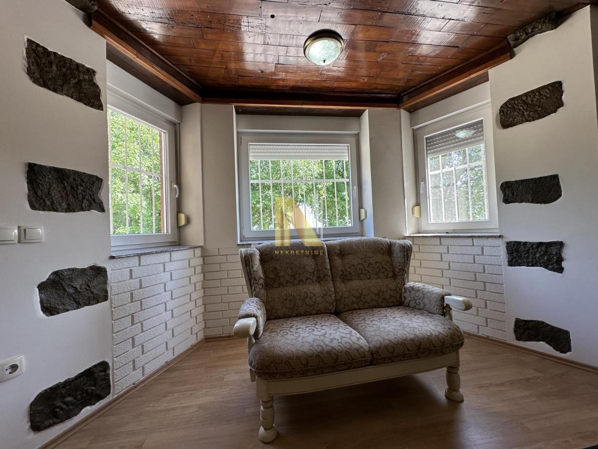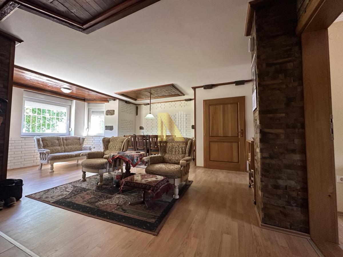 Kuća se sastoji od dnevnog boravka sa trpezarijom, 3 spavaće sobe, kupatila, hodnika i garaže u sklopu kuće.
