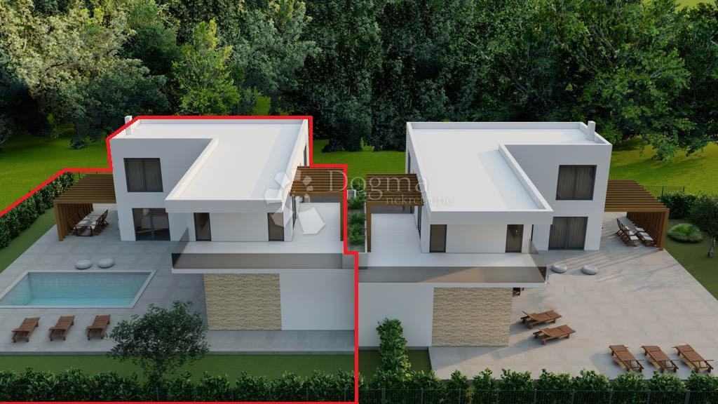 Opis: Moderna dvojna kuća s bazenom i pogledom na more – Poreč, Istra