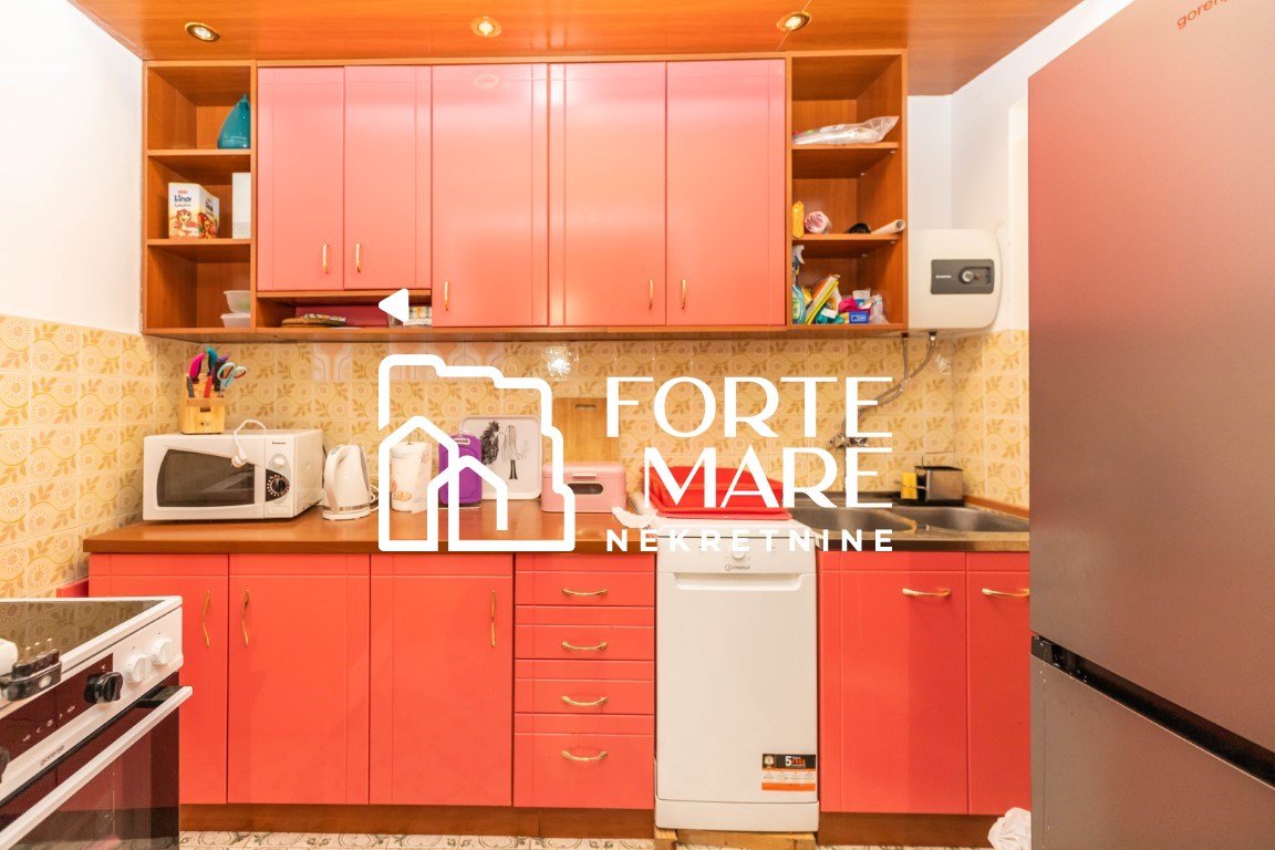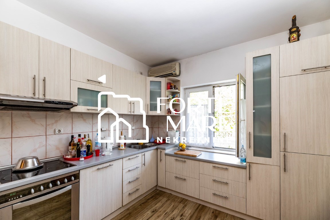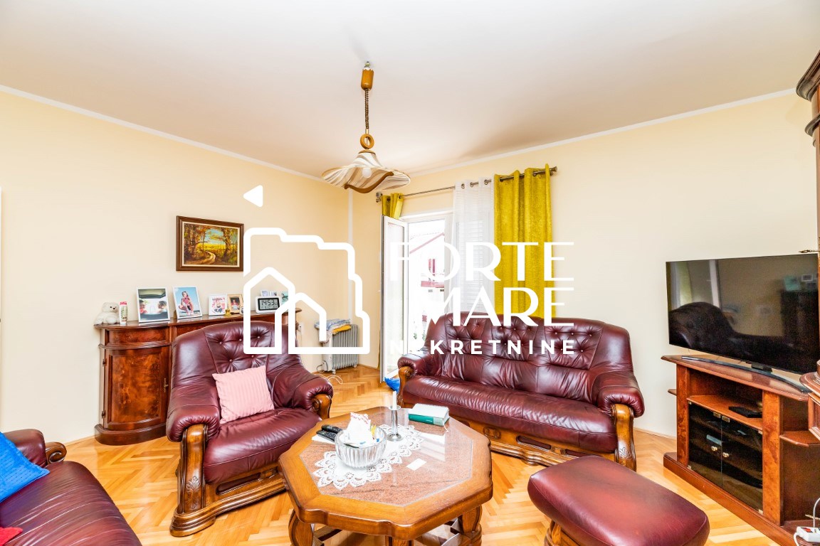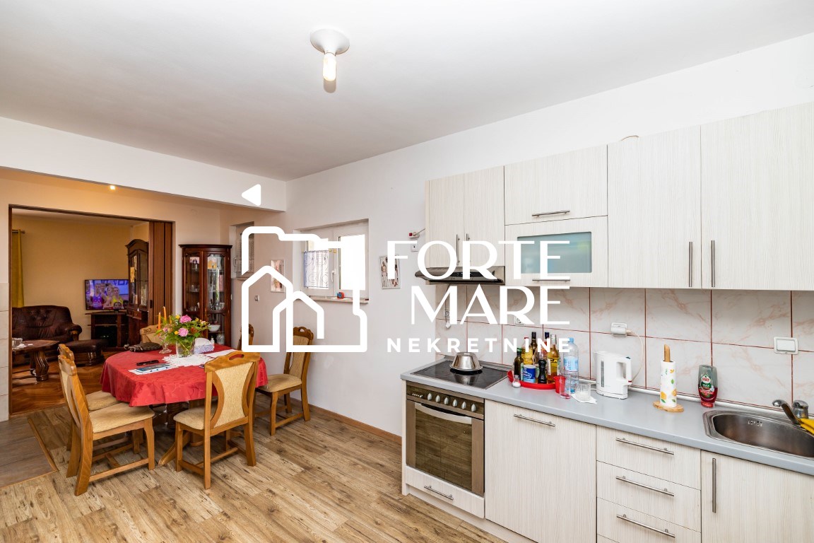 Sprat: dnevni boravak, kuhinja sa trpezarijom, dvije spavaće sobe, kupatilo.