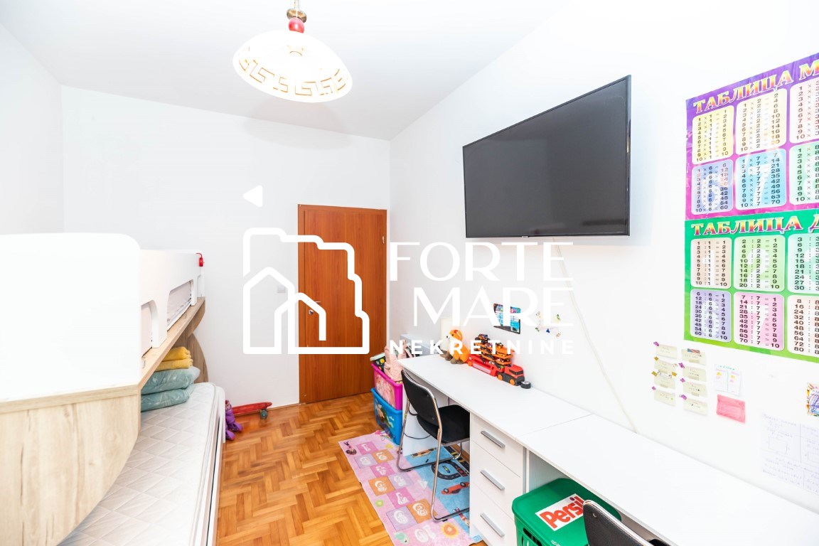Struktura: dnevni boravak sa kuhinjom i trpezarijom, hodnik, dvije spavaće sobe, dva kupatila, terasa.