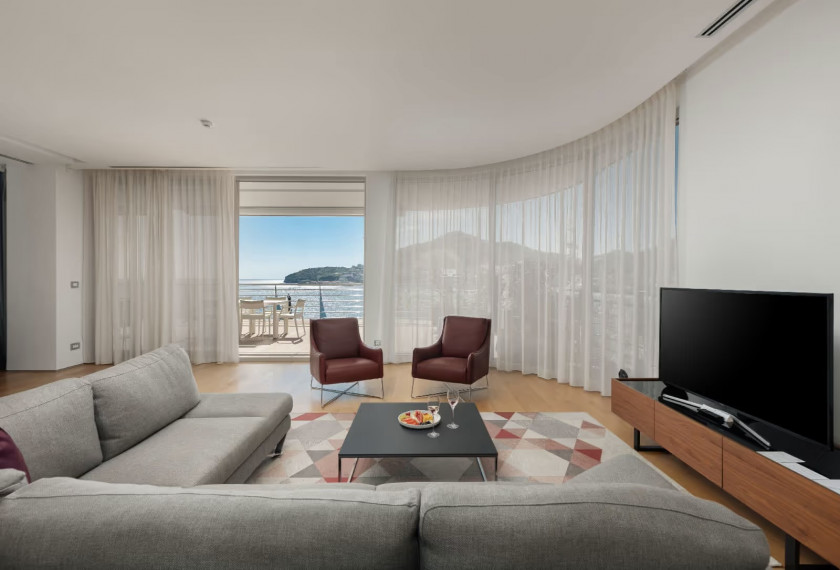 Opis: Na prodaju ekskluzivan stan u prestižnom kompleksu Dukley Gardens, smešten na četvrtom spratu uz samu morsku obalu (seaside line). Ovaj prostrani stan nudi tri spavaće sobe i prostire se na impresivnih 461 m², kombinujući luksuz, komfor i privatnost u jednom od najtraženijih rezidencijalnih kompleksa na Crnogorskom primorju.