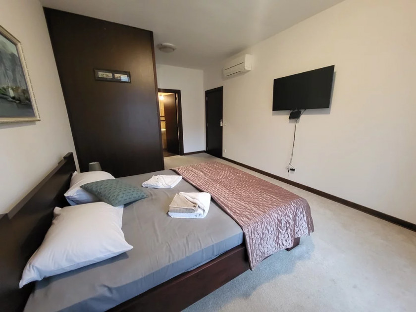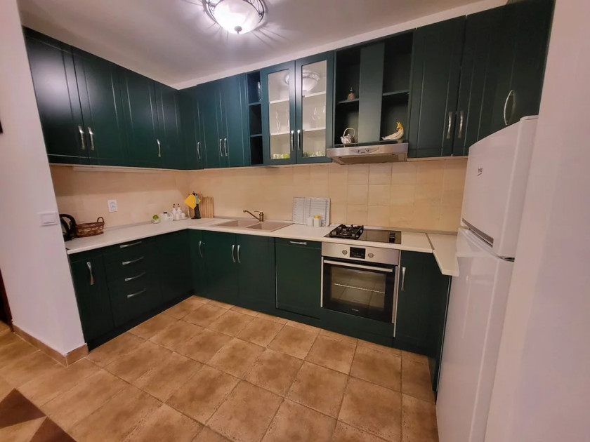 Unutar stana se nalaze dva potpuno opremljena kupatila sa podnim grejanjem. Prodaje se kompletno namješten.