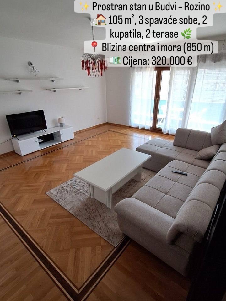 Opis: #568? Prodaja stana u Budvi, naselje Rozino, blizina marketa Cungu – tri spavaće sobe