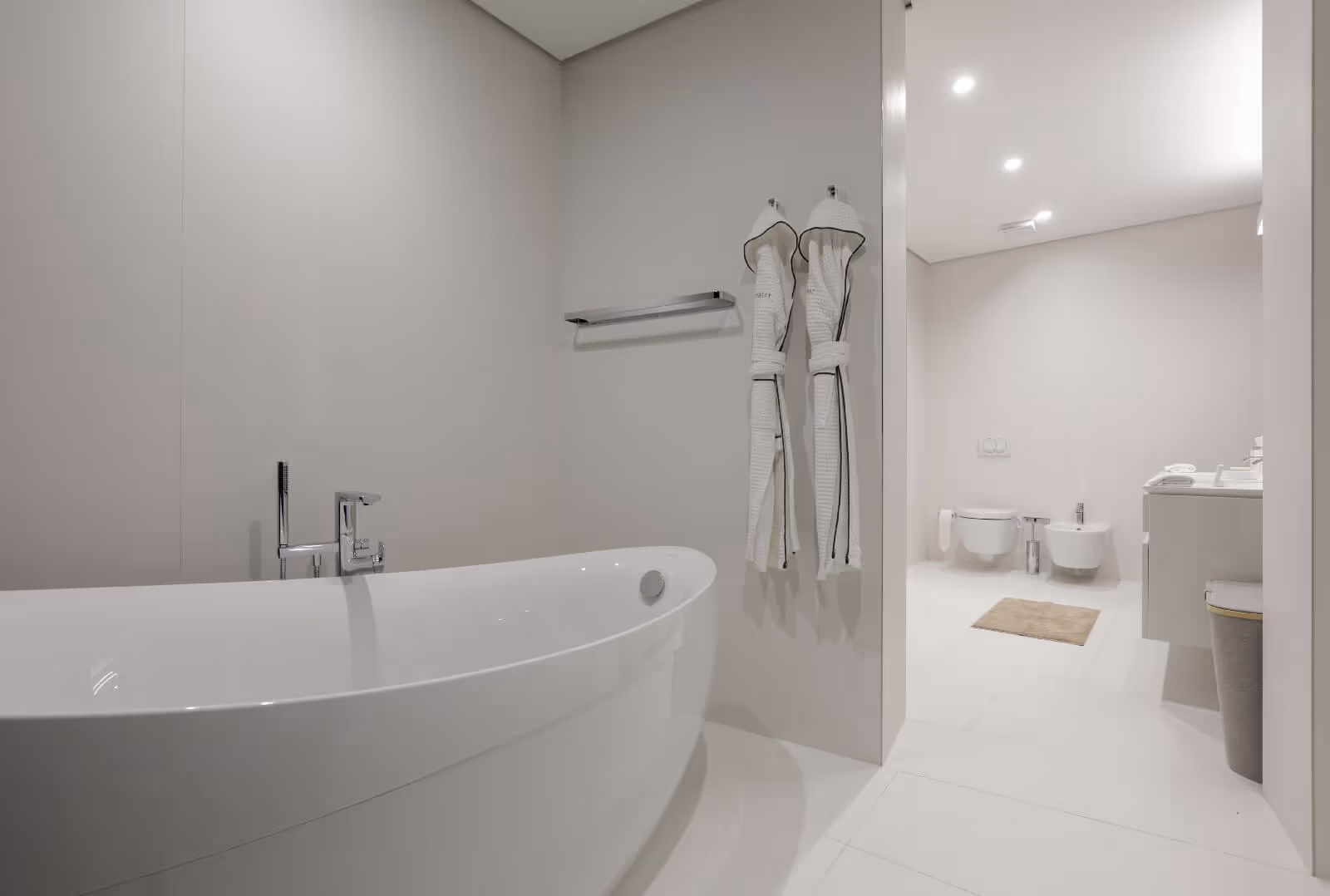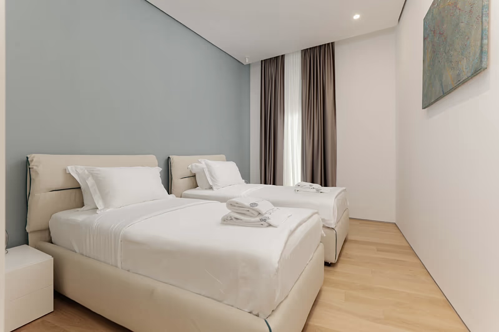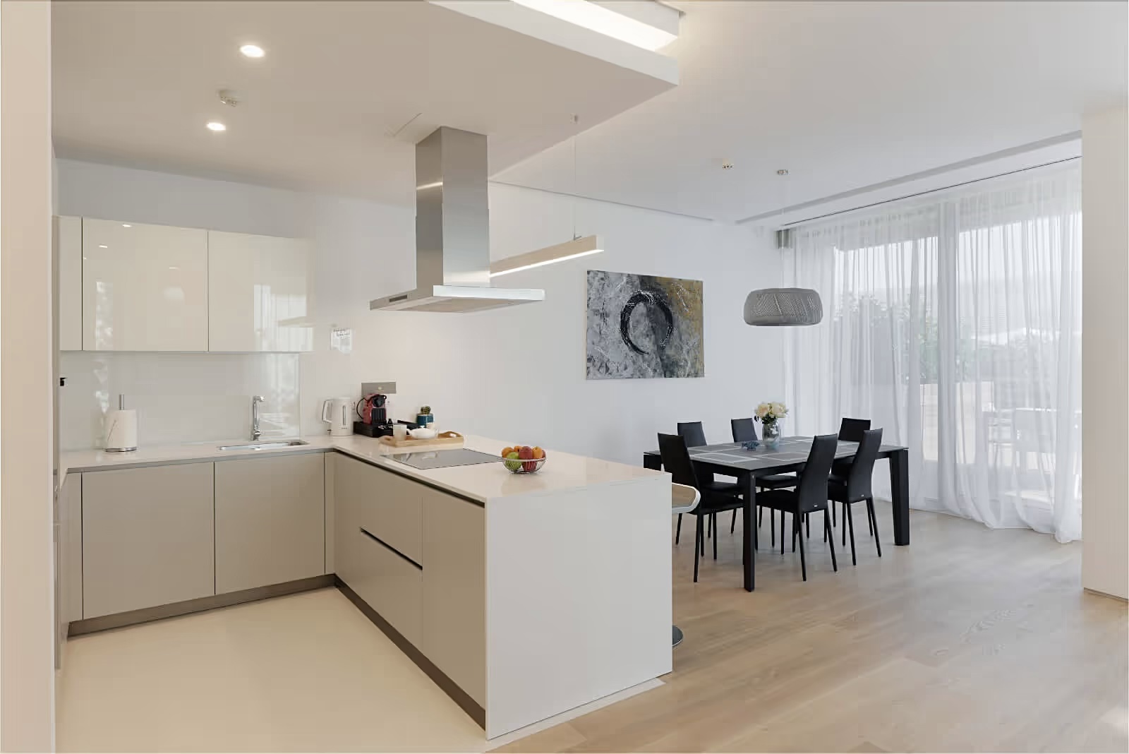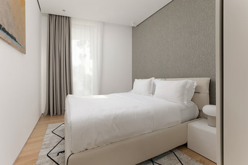 Stan se nalazi na 1. spratu, u zoni Sunny Hill line, i prostire se na 214 m². Sastoji se od tri prostrane spavaće sobe, moderno opremljenih kupatila, otvorenog dnevnog boravka povezanog sa kuhinjom i trpezarijom, kao i velike terase idealne za uživanje u pogledu i mediteranskom ambijentu.