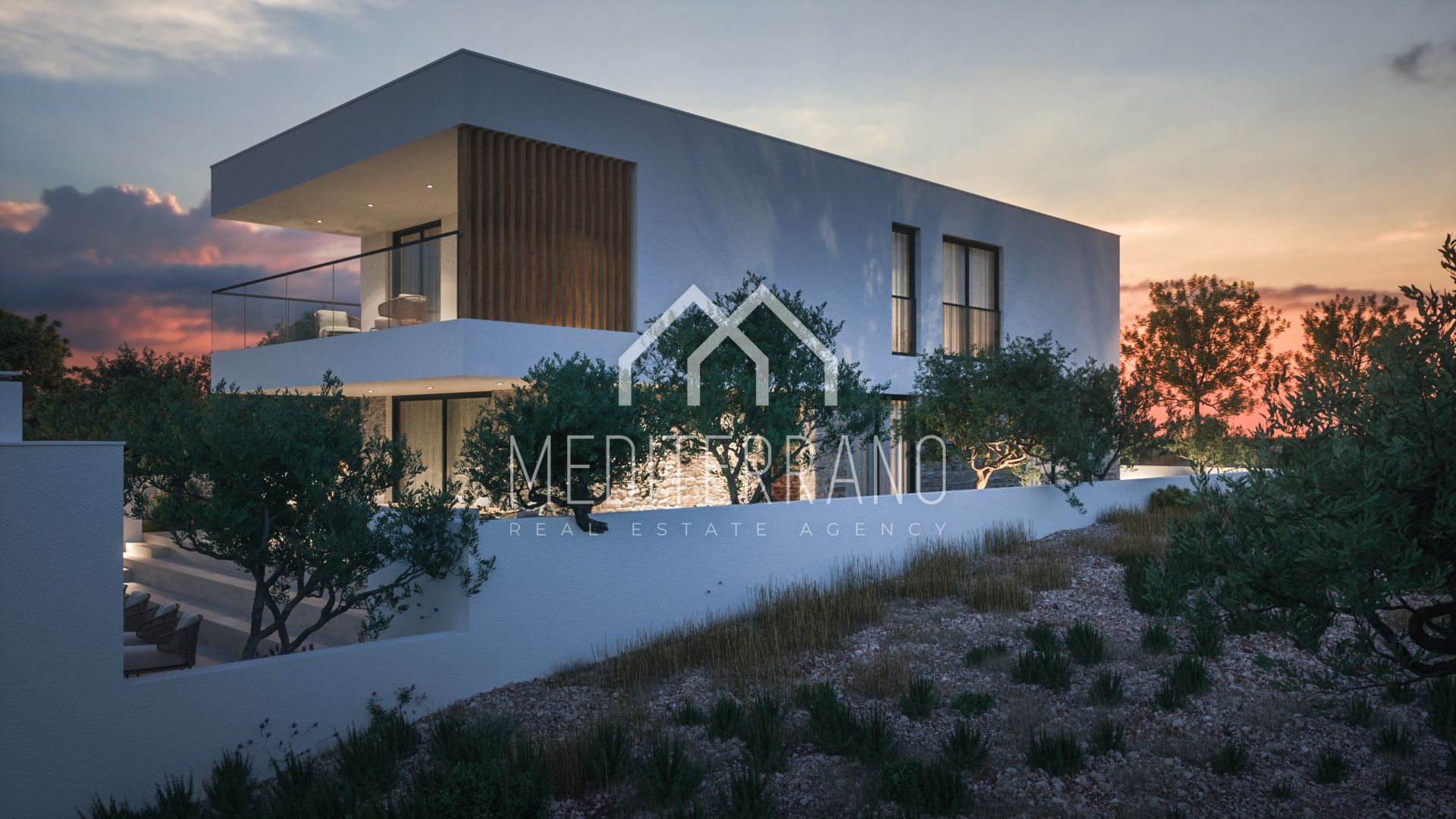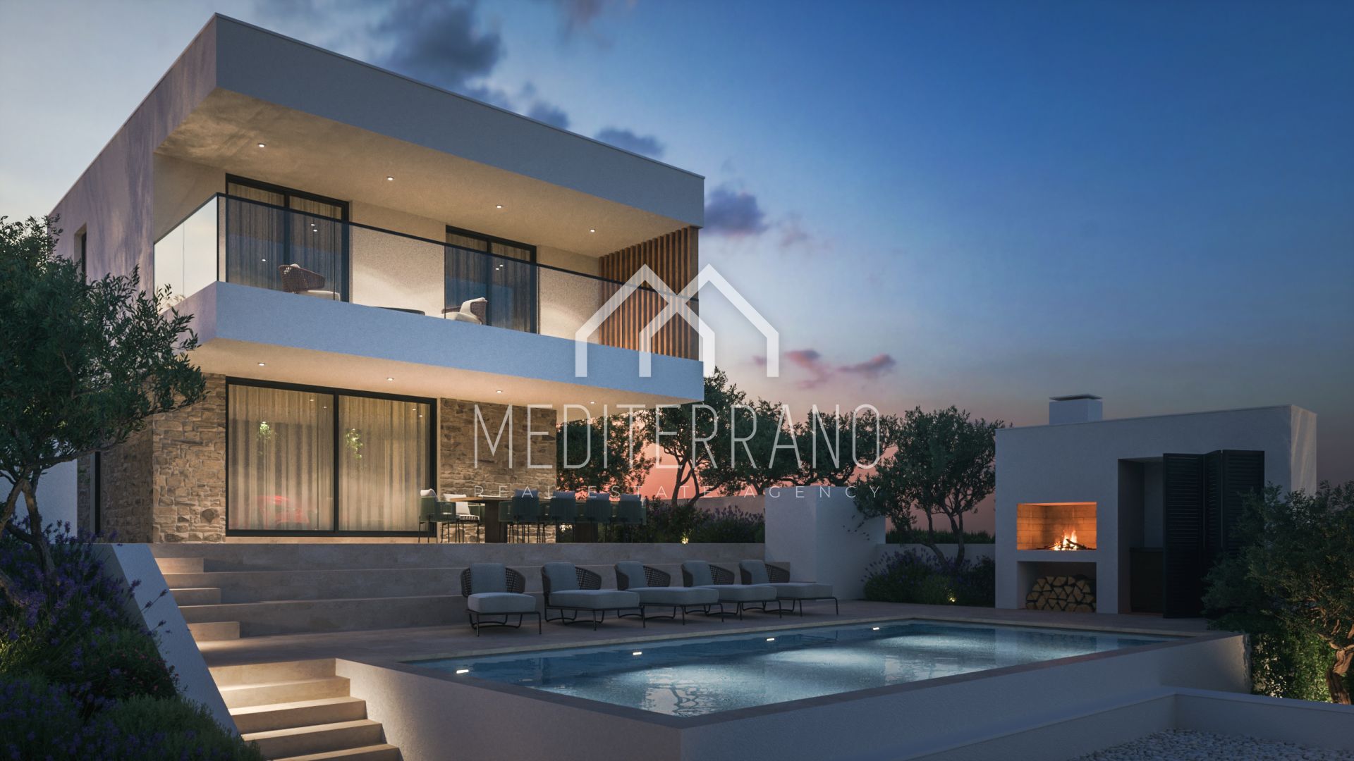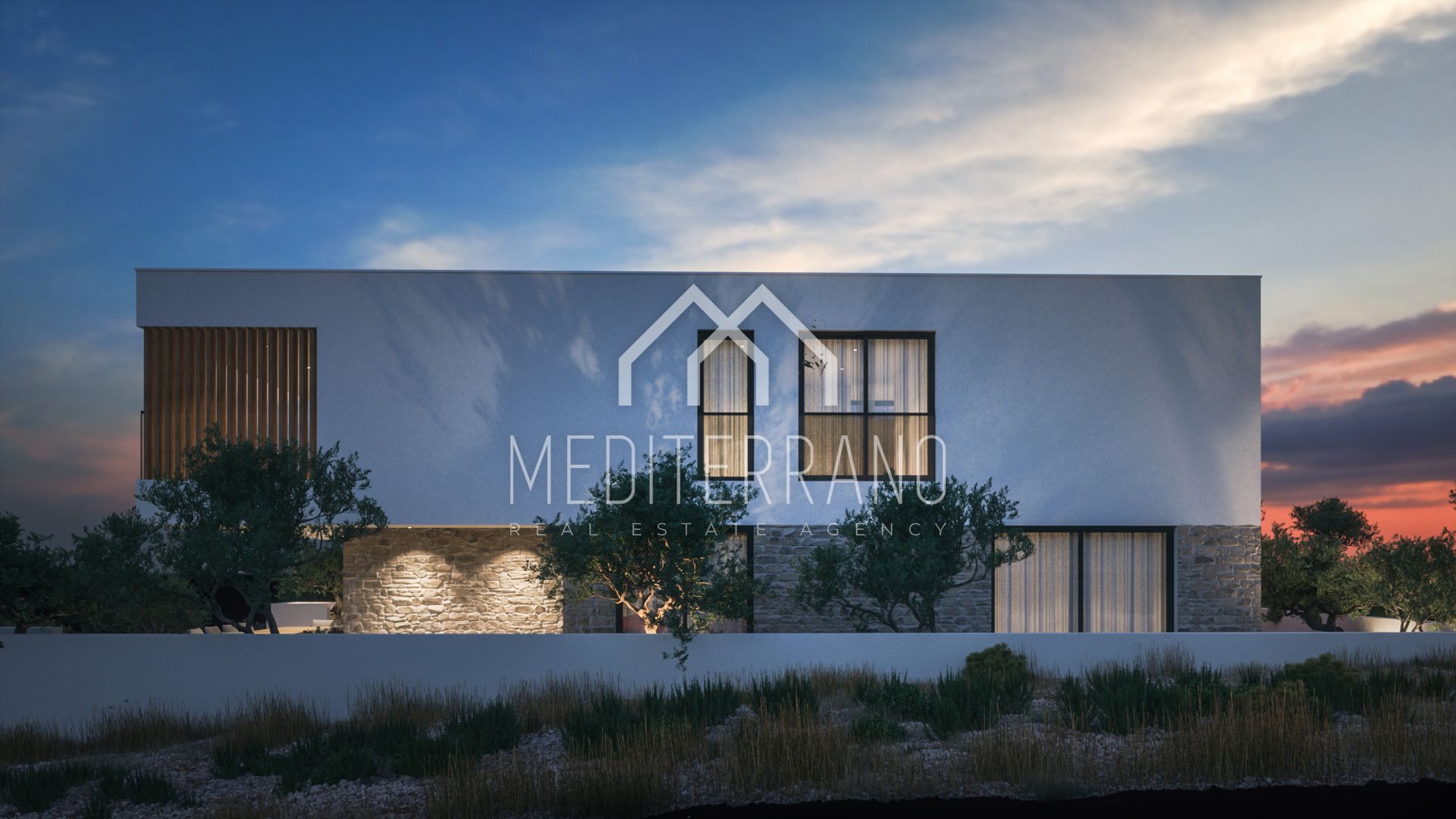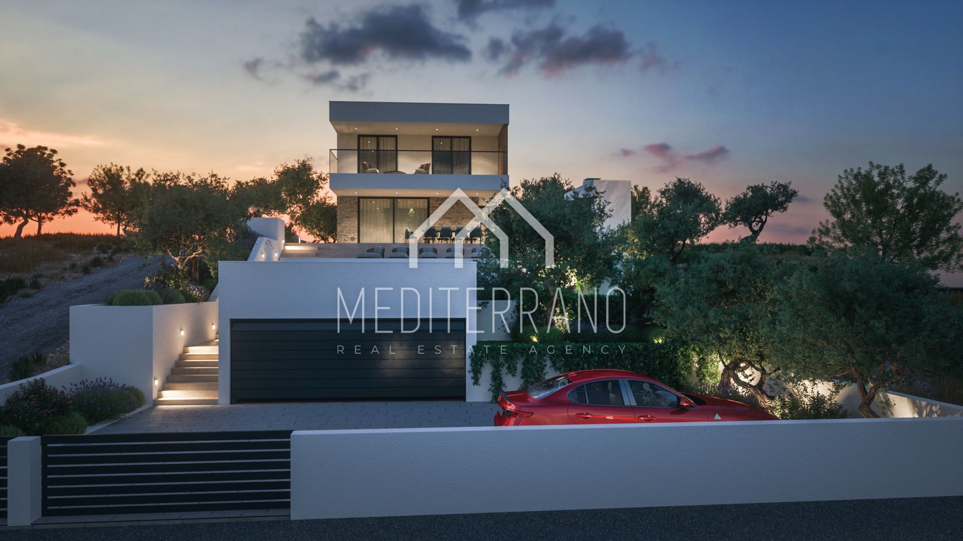 Opis: Na iznimno atraktivnoj i mirnoj lokaciji u Jasenovu, svega nekoliko minuta udaljenoj od mora, smjestila se suvremena luksuzna vila koja spaja moderan dizajn, vrhunsku opremu i potpunu udobnost življenja. Ova elegantna nekretnina prostire se na dvije etaže ukupne stambene površine 191,64 m², te dodatno garažom površine 42 m² i tri vanjska parkirna mjesta. Vila je pažljivo projektirana kako bi pružila maksimalnu funkcionalnost i estetski ugođaj, s posebnim naglaskom na vanjski prostor i skladno povezane unutarnje i vanjske sadržaje.