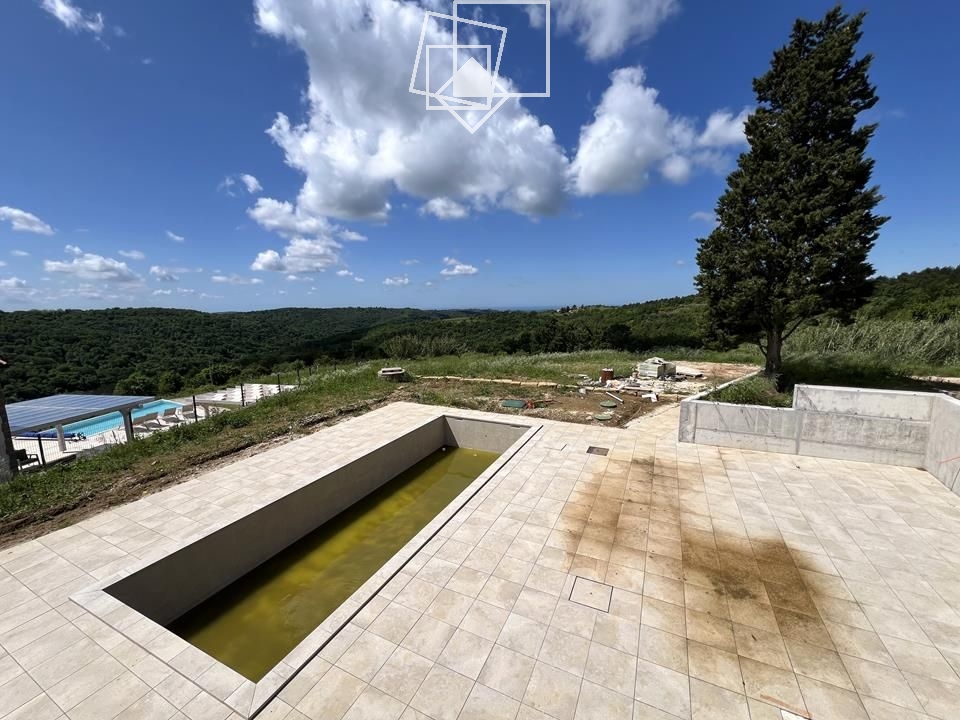Na prodaju je luksuzna kuća smještena u mirnom ruralnom naselju u Istri, svega 5 kilometara od Buja, s predivnim otvorenim pogledom na brežuljke koji se protežu sve do Jadranskog mora. Idealno mjesto za uživanje u prirodi, s jedinstvenim okruženjem koje pruža maksimalnu privatnost i mir.