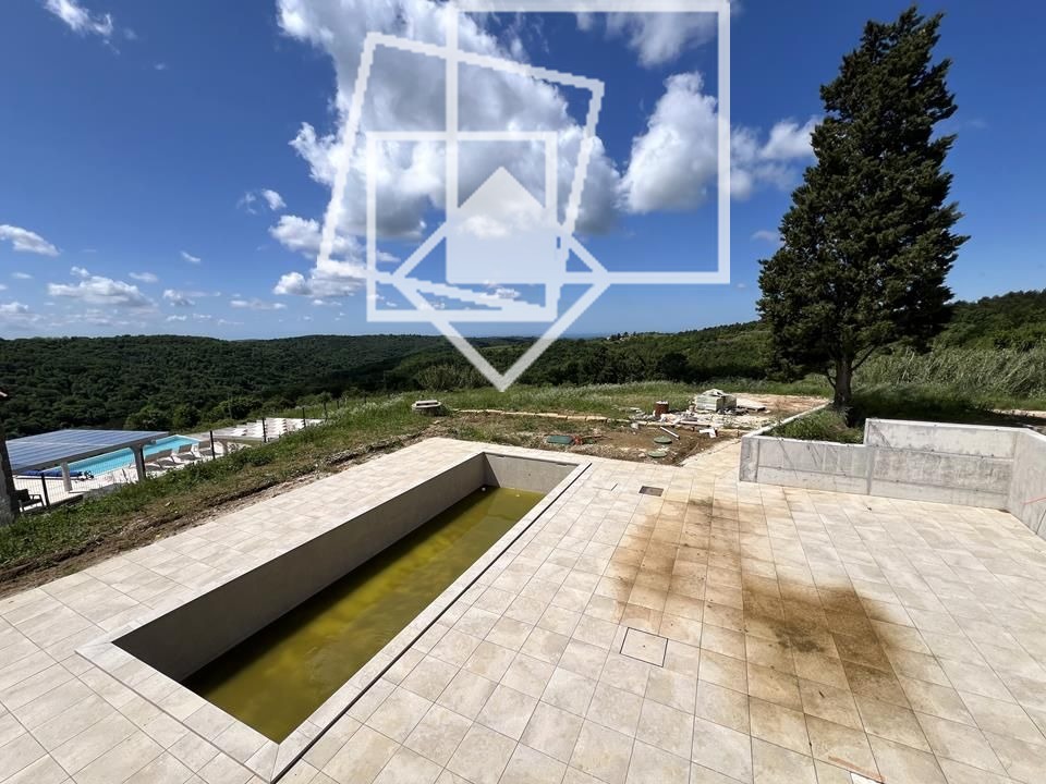 U prizemlju se gradi velika vanjska terasa (40 m²) s ljetnom kuhinjom, sunčalište i bazen dimenzija 12x5 m, savršen za opuštanje i uživanje na otvorenom.