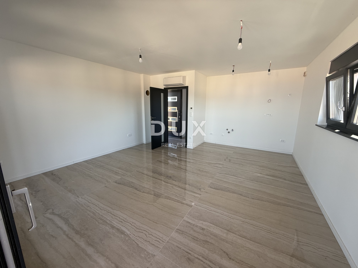 Stan se sastoji od dvije spavaće sobe, dnevnog boravka s kuhinjom, hodnika, dva kupatila i prostrane natkrivene terase s pogledom na more! Vrlo kvalitetna gradnja s antracit PVC/aluminijskom stolarijom i električnim žaluzinama, te komarnicima. Oprema uključuje u podno grijanje na struju i klima uređaje. Po cijelom stanu podna obloga je keramika 160x80!