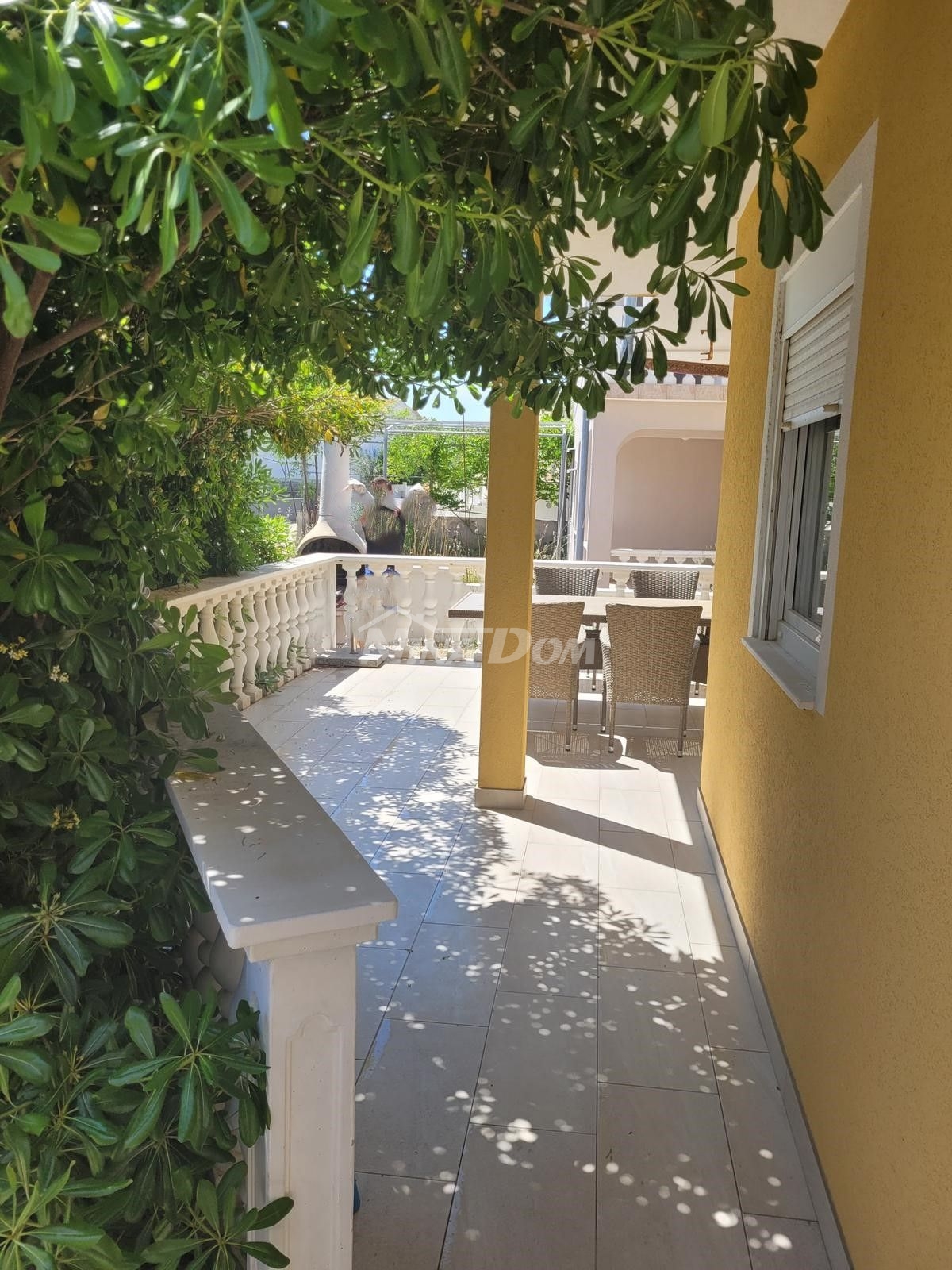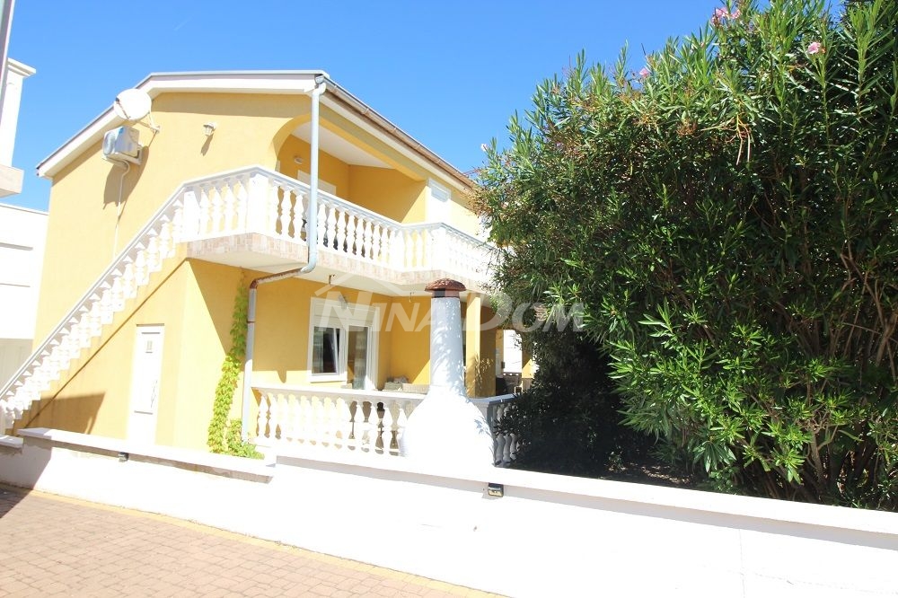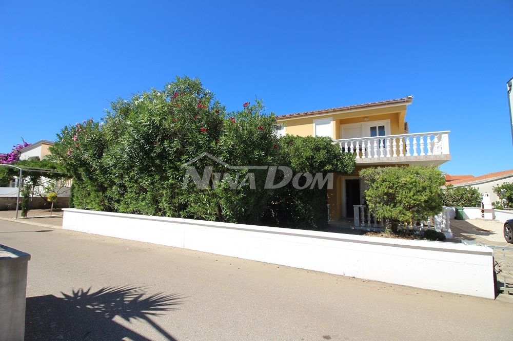 Opis: Samostojeća kuća izgrađena na 328 m2 zemljišta, tlocrtnih dimenzija 12.61 x 9.09 met. u kojoj se nalaze tri stambene jedinice.Prizemlje: trijem, kuhinja s blagovaonicom, dnevni boravak, tri spavaće sobe, kupaona i terasa.Kat: stubište s obje strane nekretnine. Na katu dva identična apartmana od kojih svaki ima kuhinju, dnevni boravak,kupaonu i jednu spavaću sobu.Ispod svakih stepenica nalazi se ostava, u jednoj ostavi nalazi se perilica, pumpa za vodu i bojler.Nekretnina je komplet opremljena i kao takva se prodaje. Klimatizirana.Okućnica lijepo uređena s dosta zelenila.Voda:cisterna za vodu, septička jama, priključak na elektro mrežu.