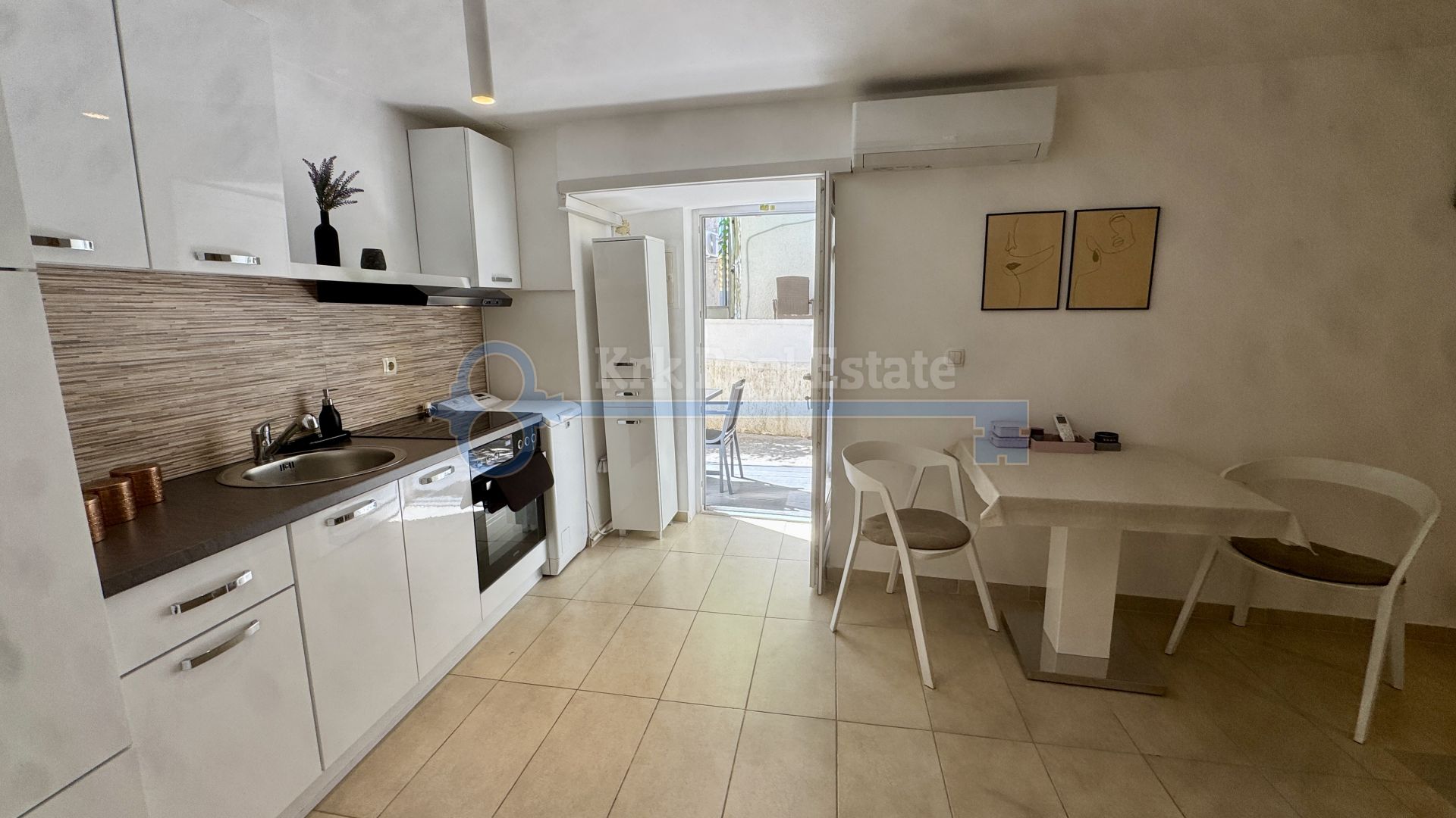 Opis: Namješten i opremljen apartman za najam u Puntu stambene površine od 40 m2, koji se sastoji od kuhinje i blagavaonice, dnevnog boravka, spavaće sobe, kupaonice i terase. Nalazi se u mirnom dijelu, udaljen od mora 290 metara.