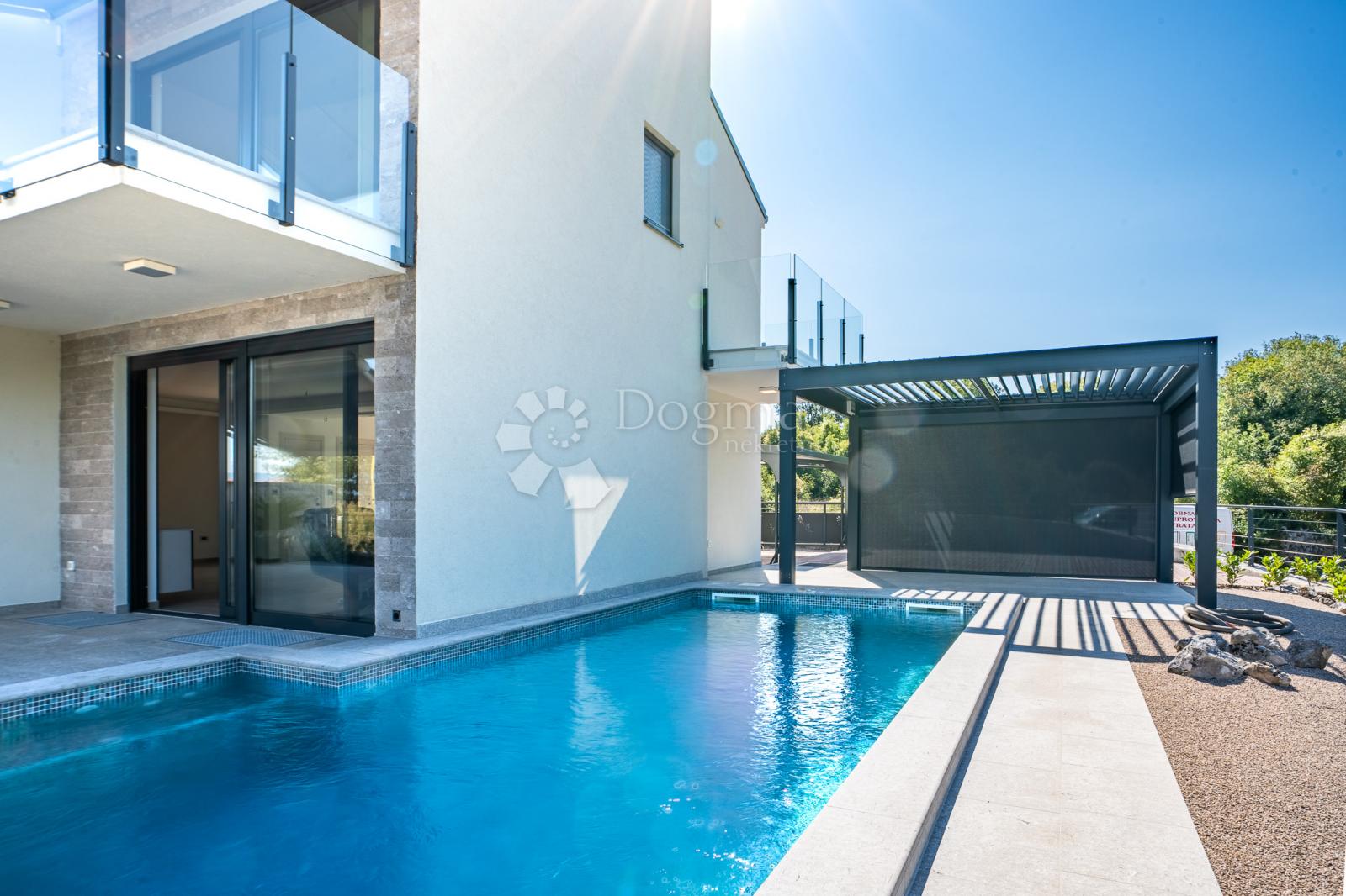 Nova kuća,namještena,bazen, pogled na more. Mirna lokacija okružena zelenilom.