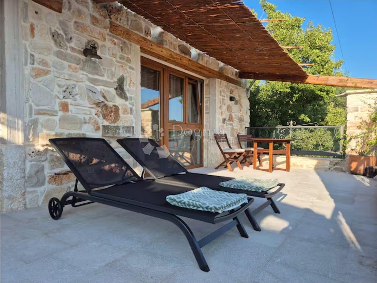 Opis: Iznajmljuje se ekskluzivna kamena vila u mediteranskom stilu, smještena u mirnom dijelu Medulina. Okružena je prostranim vrtom i terasama, a s kata se pruža prekrasan panoramski pogled na more.