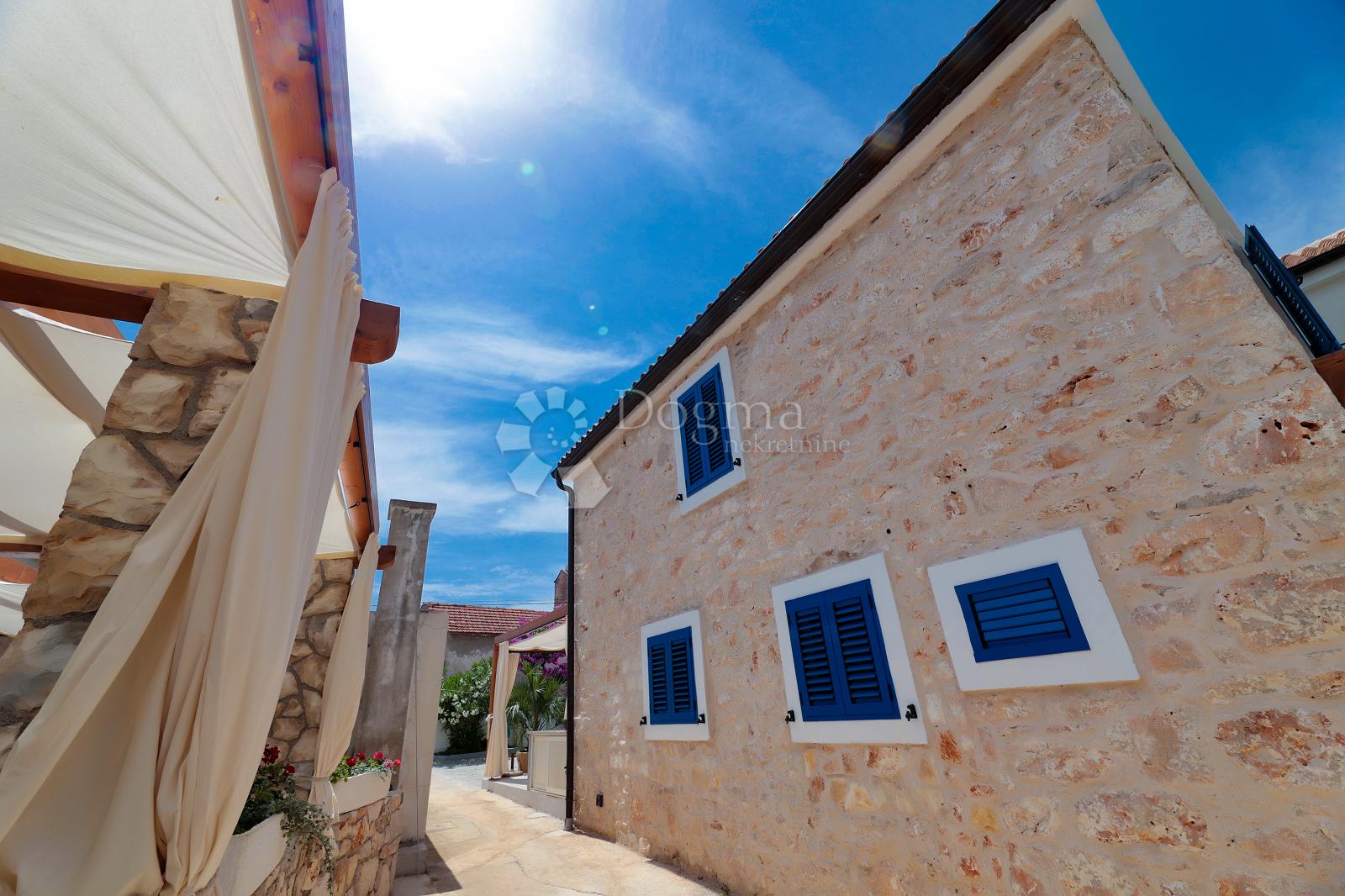 Ova izvrsna kuća nudi 140 kvadratnih metara pažljivo uređenog prostora koji spaja luksuz i mediteranski šarm. Dvije prostrane spavaće sobe i tri moderno opremljene kupaonice pružaju maksimalnu udobnost i privatnost. Unutrašnjost kuće odiše karakterom – masivni, rustikalni namještaj unosi toplinu i dojam autentične kamene vile.