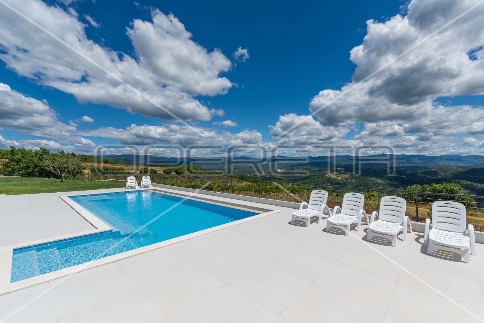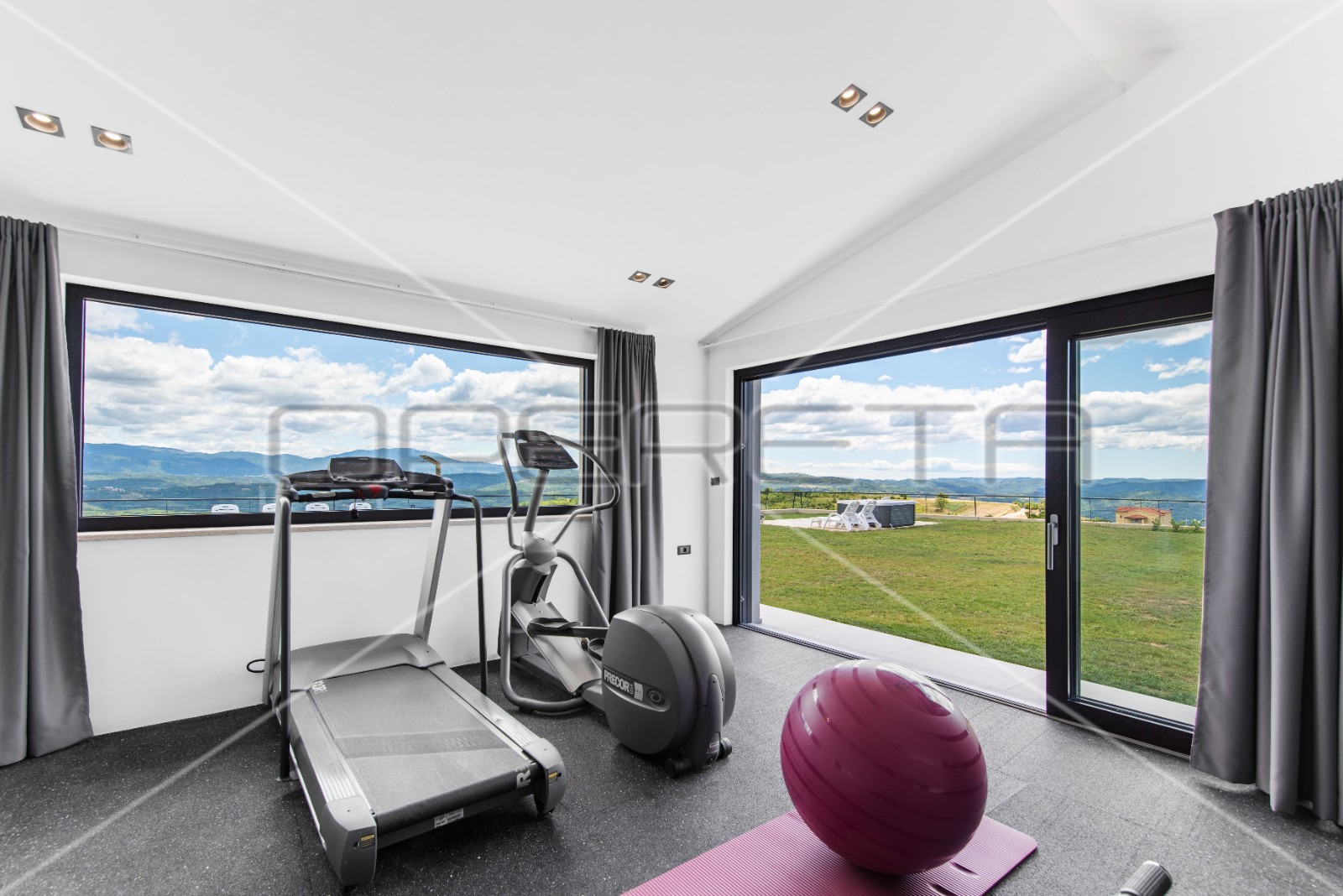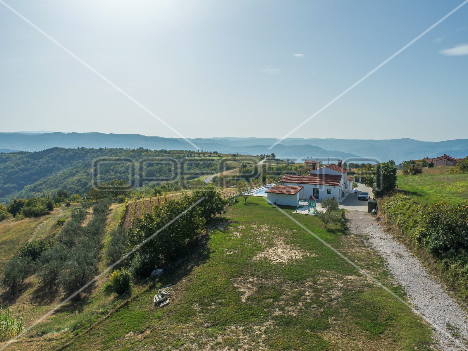 Opis: Vila na unikatnoj poziciji s neviđenim pogledom, Vrh (Istra)Video: https://www.youtube.com/shorts/vKzTgMH4oQ4Na 396 m2 nadmorske visine i mikro naselju Vrh, smjestila se vila koja pruža pravu rijetkost uživanja u „neograničenom“ pogledom na Istru.Smještena na rubnom dijelu naselja s 40-tak kuća, ova vila nema ništa ispred sebe osim pregršt brdašca i predivne prirode. Vila je izgrađena na parceli od 3.385 m2 što pruža velik osjećaj intime s mogućnošću mnoštvo različitog sadržaja za kvalitetno iskorištavanje ovakve lokacije. Veliki bazen, jacuzzi i pomoćni objekt, svi pozicionirani na donjem dijelu parcele kako bi u svakom trenutku mogli uživati u pogledima na prirodu. Vanjski dio vile je napravljen u tradicionalnom obliku s dodatkom kompletnog vanjskog osvjetljenja, dok je unutrašnjost upotpunjeno modernom stilu života i dizajna, otvorenog prostora i komfornih soba.Prizemlje vile je većinski povezano u jedan prostor što čini dnevni boravak, blagovaonica i kuhinja, te dodatno sadrži spavaću sobu, kupaonicu i opremljenu teretanu....
