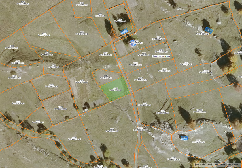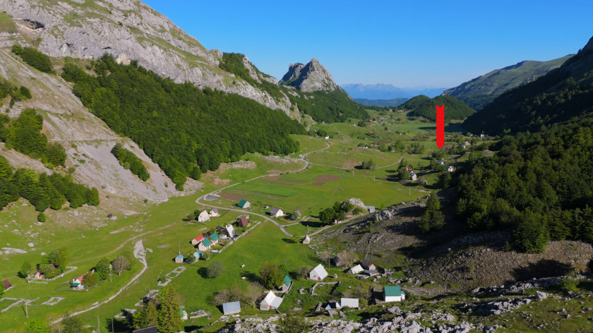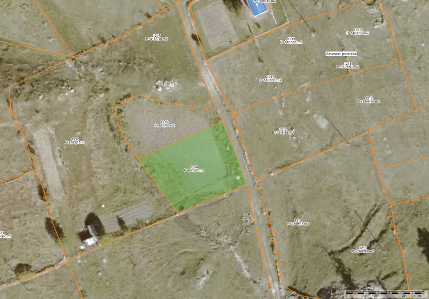 Opis: Plac od 681 m2 na katunu Mokra (KP 1216; KO Gornje Stravče).