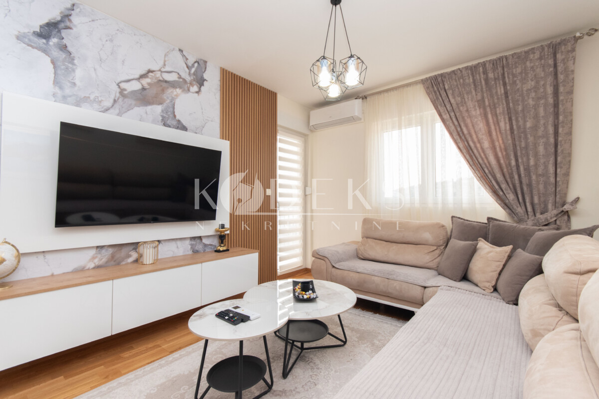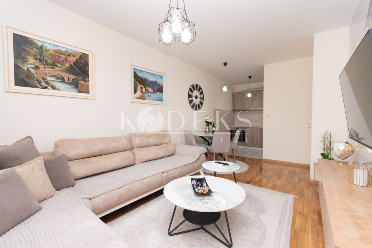 Opis: Izdaje se luksuzno opremljen dvosoban stan smješten na jedanaestom spratu (posljednjem) stambene zgrade Zetagradnje.