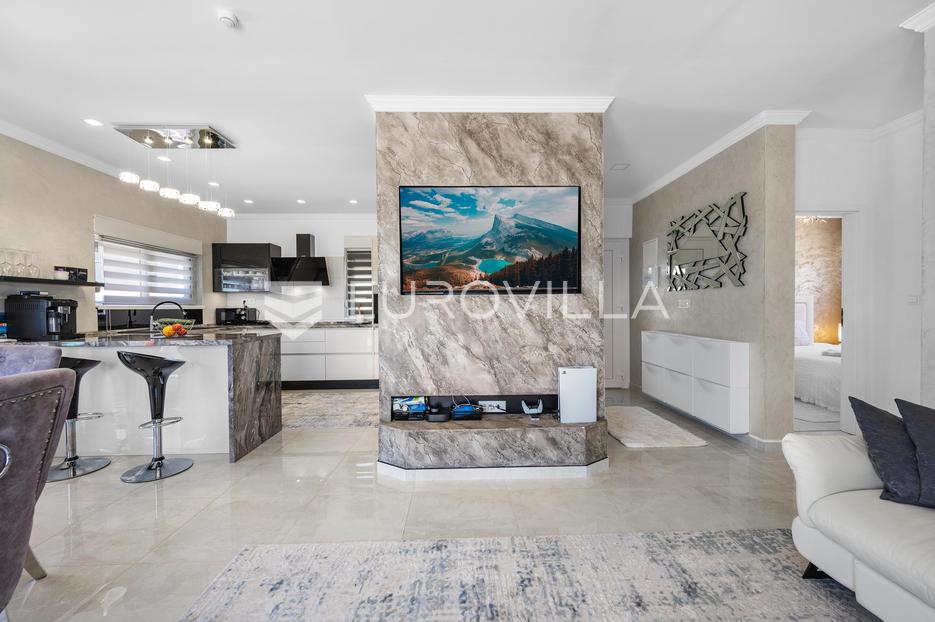 Opis: Šibenik, Bilice, moderna prizermnica s dvorištem, ukupne površine 106,90 m² izgrađena 2021. godine. Prodaje se potpuno namještena i opremljena, te idealna za odmor ili turistički najam.Izgrađena na parceli od 905 m²., sastoji se od prizemlja u kojem se nalazi prostrani dnevni boravak, kuhinja i blagovaonica, 3 spavaće sobe, kupaonica te vešeraj. Iz boravka i blagovaonice izlazi se na prostranu terasu i dvorište. U dvorištu postoji natkriveni parking za dva automobila, te po potrebi stane još i veći broj automobila na nenatkrivenom dijelu.Kuća je građena po vrhunskim standardima, te je jako lijepo uređena. Ugrađen je klima uređaj, solarno i električno grijanje vode i satelitska televizija.Sve ostale informacije na upit.Za ovu nekretninu kontaktirajte agenta na broj telefona +385 98 163 3268.Više na Eurovilla.hr, ID: 830806Direktan link: https://eurovilla.hr/nekretnina/sibenik-bilice-moderna-prizemnica-s-dvoristem/830806/