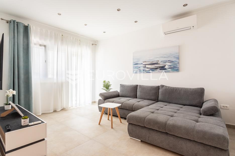 Opis: Trogir, komforan i u potpunosti renoviran dvosoban stan dostupan za dugoročan najam.Položen je u prizemlju obiteljske kuće, a podijeljen je na hodnik, kuhinju s blagovaonicom, dnevni boravak, dvije spavaće sobe ( od kojih jedna ima pripadajući WC ) i kupaonicu.Stanu pripada prostrana terasa površine 25 m2, mali vrt s umjetnom travom i jedno ograđeno vanjsko parkirno mjesto. Stambena površina iznosi 80 m2.Lokacija je odlična, mirna i sigurna, a samo nekoliko minuta hoda udaljena od strogo centra Trogira.Režije nisu uključene u cijenu.Za sva ostala pitanja, stojimo vam na raspolaganju.Za ovu nekretninu kontaktirajte agenticu na broj telefona +385 91 2300 183.Više na Eurovilla.hr, ID: 606486Direktan link: https://eurovilla.hr/nekretnina/trogir-dvosoban-stan-s-terasom-i-vrtom-dugorocan-najam/606486/