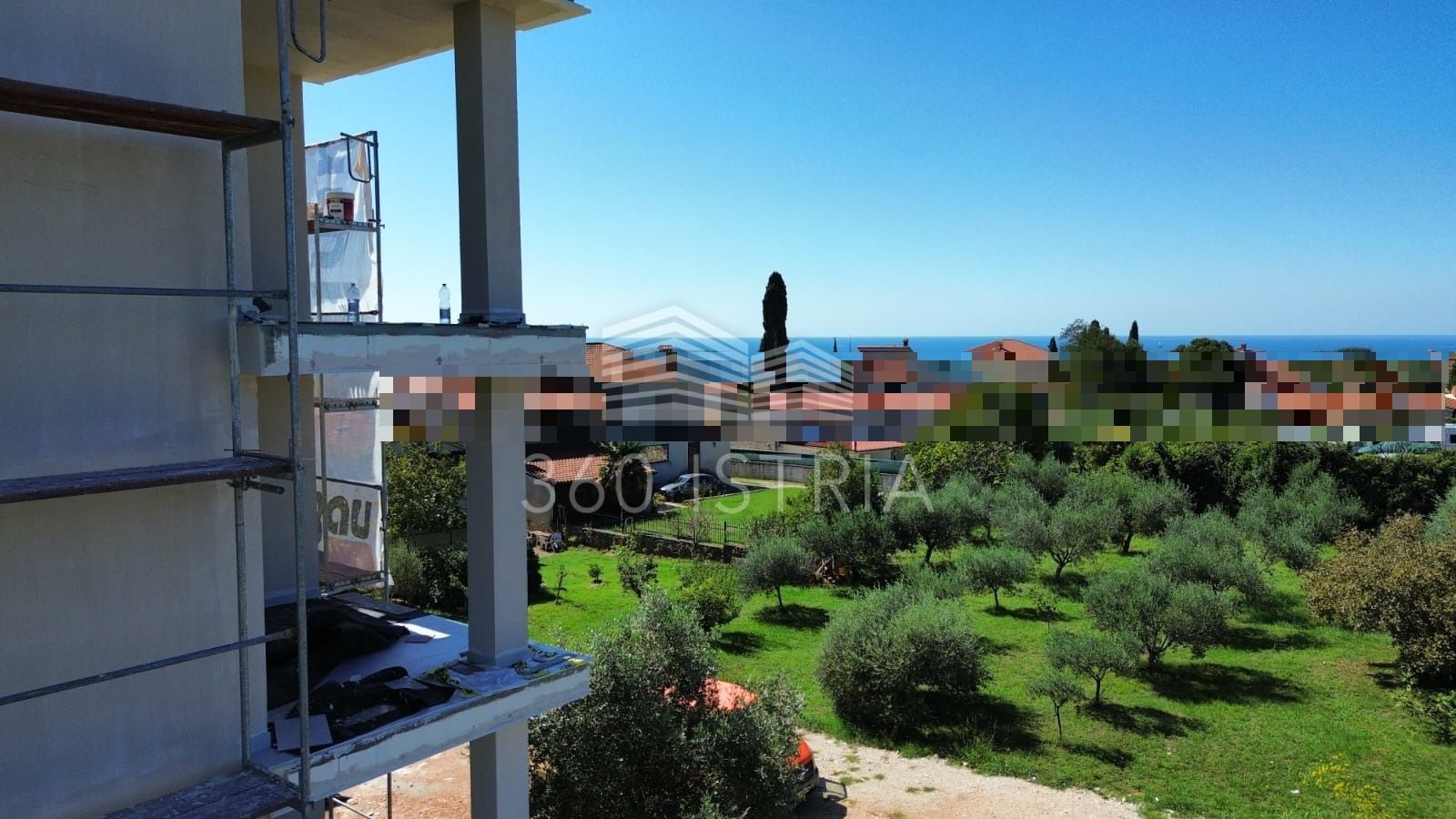 Na rubu slikovitog poznatog istarskog mjestašca, otprilike 1.8 kilometara od obale, nudi se stan u suvremenoj zgradi sa pogledom na more.