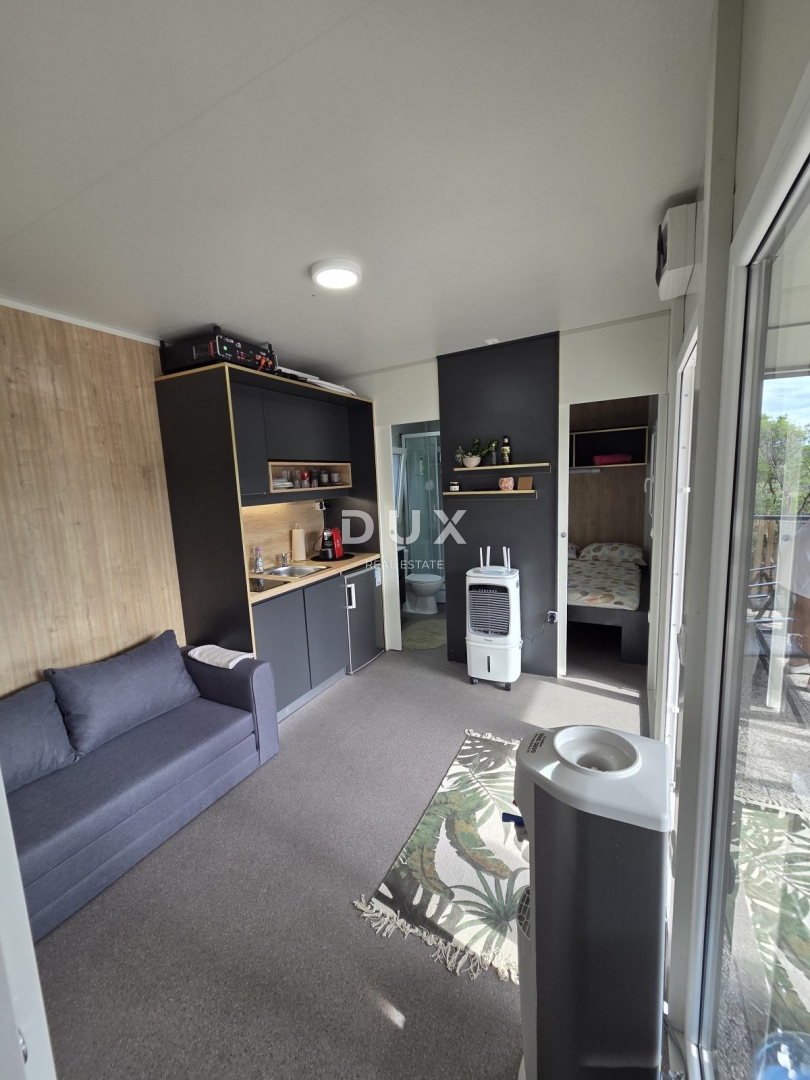 U ponudi DUX nekretnina predstavljamo ovu šarmantnu montažnu kućicu na poljoprivrednom zemljištu, skrivenu u zelenilu, smještenu na svega 220 metara od mora, a daleko od svakodnevne buke i gužve. Bez bližih susjeda, uronjena u prirodu – savršena za sve koji sanjaju o potpunom miru i privatnosti.