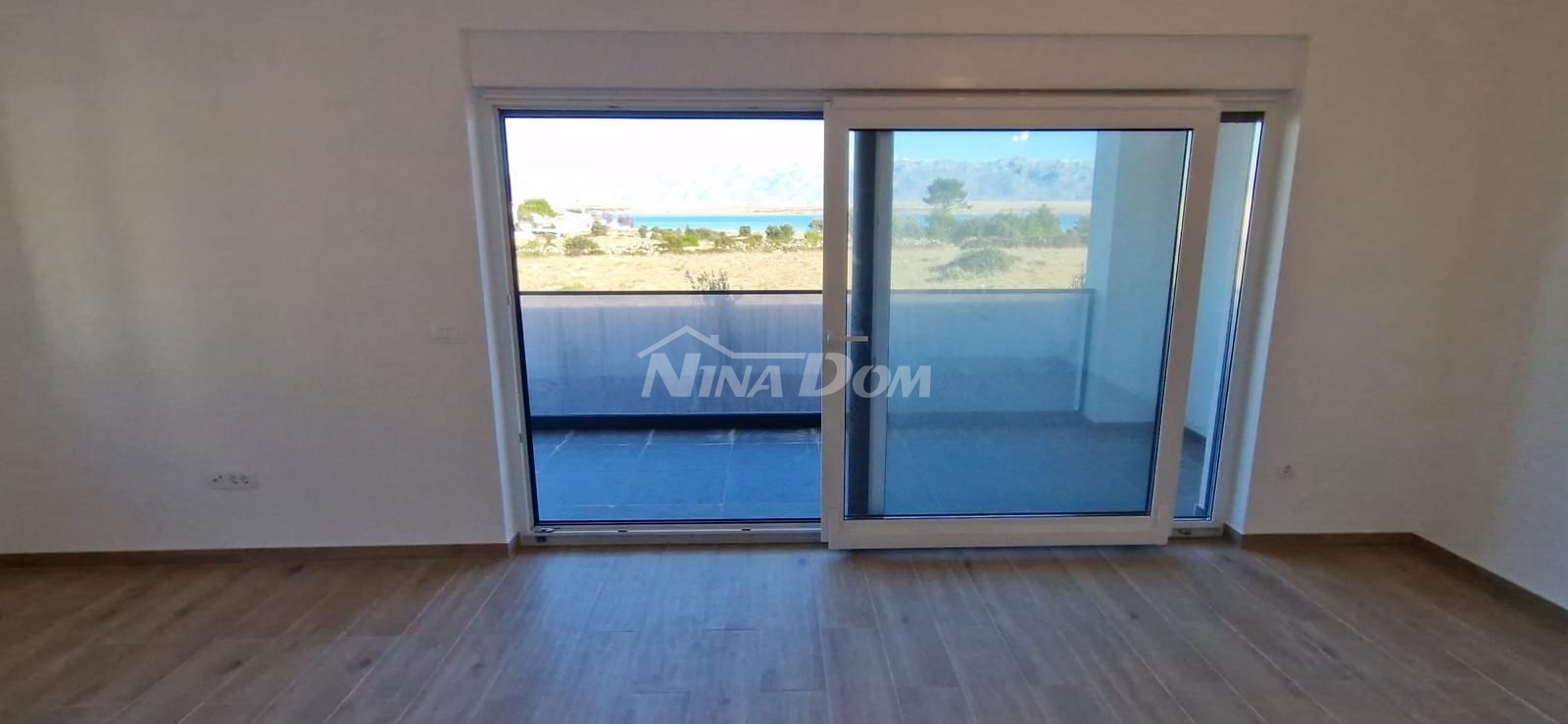 Opis: Novogradnja, apartman na prvom katu s koji se sastoji od hodnika, kuhinje s blagovaonice i dnevnog boravka, dvije spavaće sobe, kupaonice i dvije terase.Ukupna korisna površina posebnog dijela etažne jedinice n katu iznosi 90.59 m2. Pripadak etažnoj jedinici je parkirno mjesto površine 14.62 m2. Krovna terasa 90.96 m2. Apartman je klimatiziran, spojen na gradski vodovod i kanalizaciju.Od Mora i plaže u Prezidi udaljen je 260 metara.Apartman ima predivan pogled na more i Velebit.
