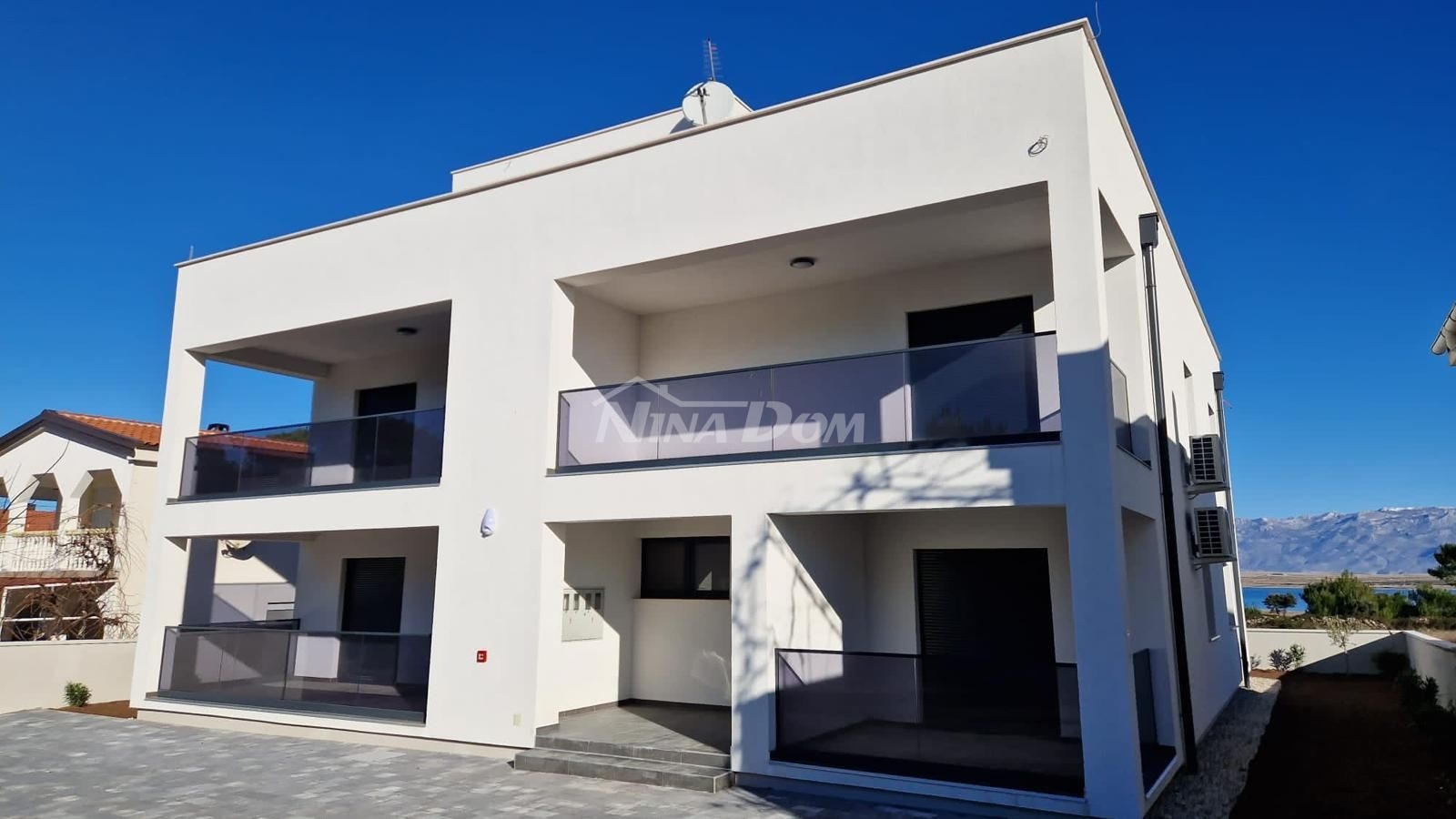 Opis: Novogradnja, apartman u prizemlju s koji se sastoji od hodnika, kuhinje s blagovaonice i dnevnog boravka, dvije spavaće sobe, kupaonice i dvije terase.Ukupna korisna površina posebnog dijela etažne jedinice u prizemlju iznosi 81,17 m2. Pripadak etažnoj jedinici je i zemljište 34.09 m2 i parkirno mjesto površine 14.96 m2.Apartman je klimatiziran, spojen na gradski vodovod i kanalizaciju.Od Mora i plaže u Prezidi udaljen je 260 metara.Apartman ima predivan pogled na more i Velebit.