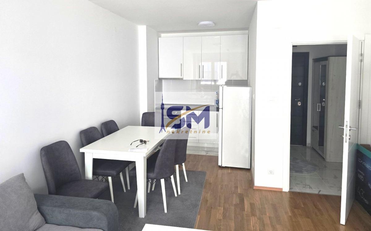 Opis: Stan 44m2 sa terasom, potpuno nov, kompletno opremljen, uknjižen, odmah useljiv, mogućnost kupovine preko stambenog kredita. Funkcionalan raspored, odvojena spavaća soba, komforan dnevni boravak sa trepezarijskim delom i kuhinjom, kupatilo i terasa. Uz stan ide i pripadajuce parking mesto.