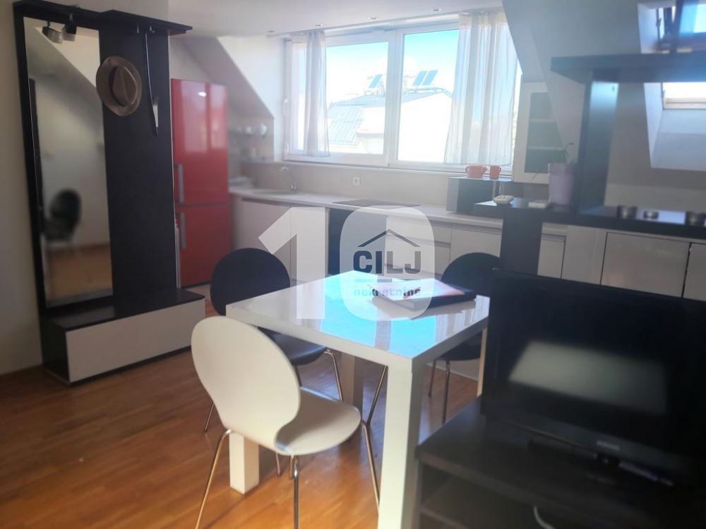 Jedinstvena nekretnina koja površinom od 36m2 ispunjava sve uslove komfora: objedinjen dnevnotrpezarijski prostor sa kuhinjom, spavaća sobu sa svojim kupatilom i poseban gostinski toalet.