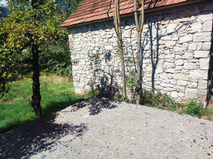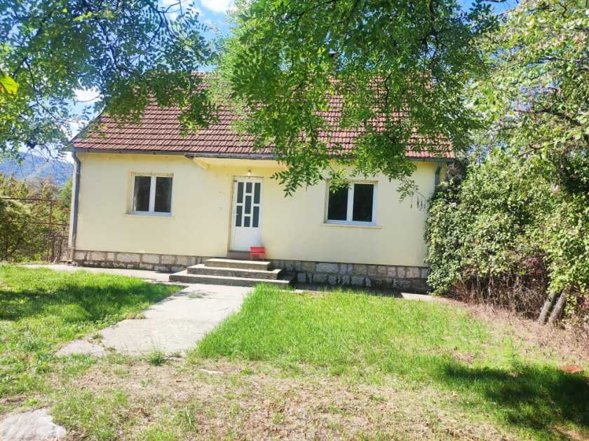 U idealnom centru sela, ova kuća površine 98 kvadratnih metara smještena je na velikoj parceli od 1.703 kvadratna metra (17 ari). Sastoji se od stambenog sprata (južni, visina plafona 2,3 metra) unutrašnje površine 20 kvadratnih metara (sa dva ulaza - iz kuće i iz dvorišta) i nadzemnog stambenog sprata unutrašnje površine (bez zidova i pregrada) od 68 kvadratnih metara: hodnik, dvije velike spavaće sobe, dnevni boravak sa kuhinjom, ostava i kupatilo. Ovaj sprat ima dva ulaza: centralni i bočni ulaz na terasu sa izlazom u baštu. Dva dimnjaka su integrisana u zidove kuće. PVC prozori i vrata, gradske komunalije i internet su dostupni. Djelomično namještena, uključeno u cijenu. Kuća zahtijeva unutrašnje kozmetičke popravke i čišćenje. Imanje je ograđeno i ima dva pomoćna kamena objekta površine 15 i 40 kvadratnih metara, koji su oba navedeni u vlasničkom listu. Centar sela - škola, prodavnice i apoteka - udaljen je 60 metara. Grad Nikšić je udaljen 8 km, jezera za ribolov 7 km, a skijalište Žabljak 55 km. Kuća je bez tereta i ograničenja, i nije potrebna legalizacija. Moguća je kupovina od strane stranog fizičkog lica. U zavisnosti od uslova i načina plaćanja, cijena je 83.000–85.000 eura.