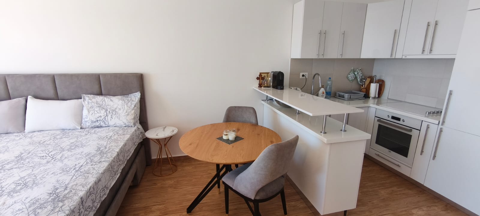 Apartman je nov, potpuno namješten i opremljen aparatima, a kupaonica ima tuš. Spreman za useljenje i pogodan za najam.