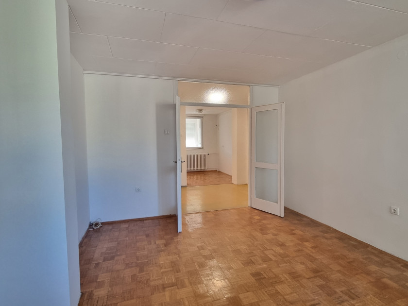 Stan ima savršeno raspoređen prostor i čini ga veliki dnevni boravak sa balkonom, odvojena kuhinja sa izlazom na lođu, trpezarija, dvije prostrane spavaće sobe, kupatilo, dodatni WC i praktičan hodnik koji odvaja dnevni od spavaćeg dijela. Ukoliko postoji potreba, uz manja ulaganja moguće je preurediti prostor i dobiti dodatnu spavaću sobu, čime stan postaje savršen četverosoban dom.
