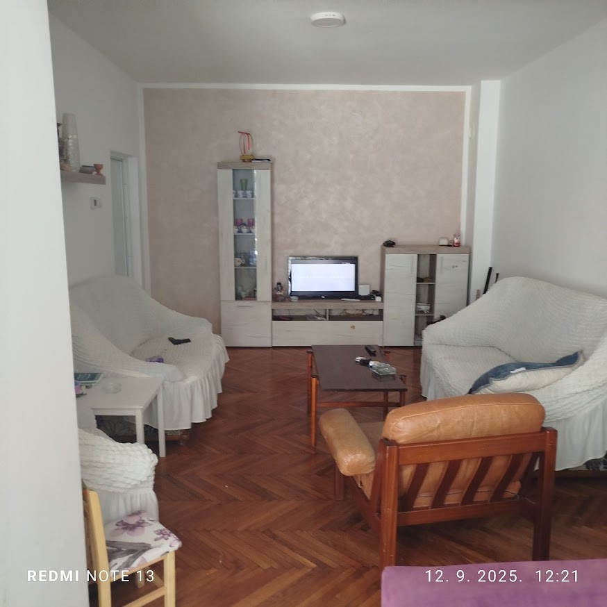 Opis: Stan u prizemlju zgrade sa dva stana i malim dvorištem. Stan veličine 61m2 plus podrum plus garaža sve ukupno 81m2. nad stanom je dozvoljeno podizanje sprata. Stambeni prostor je kompletno renoviran.