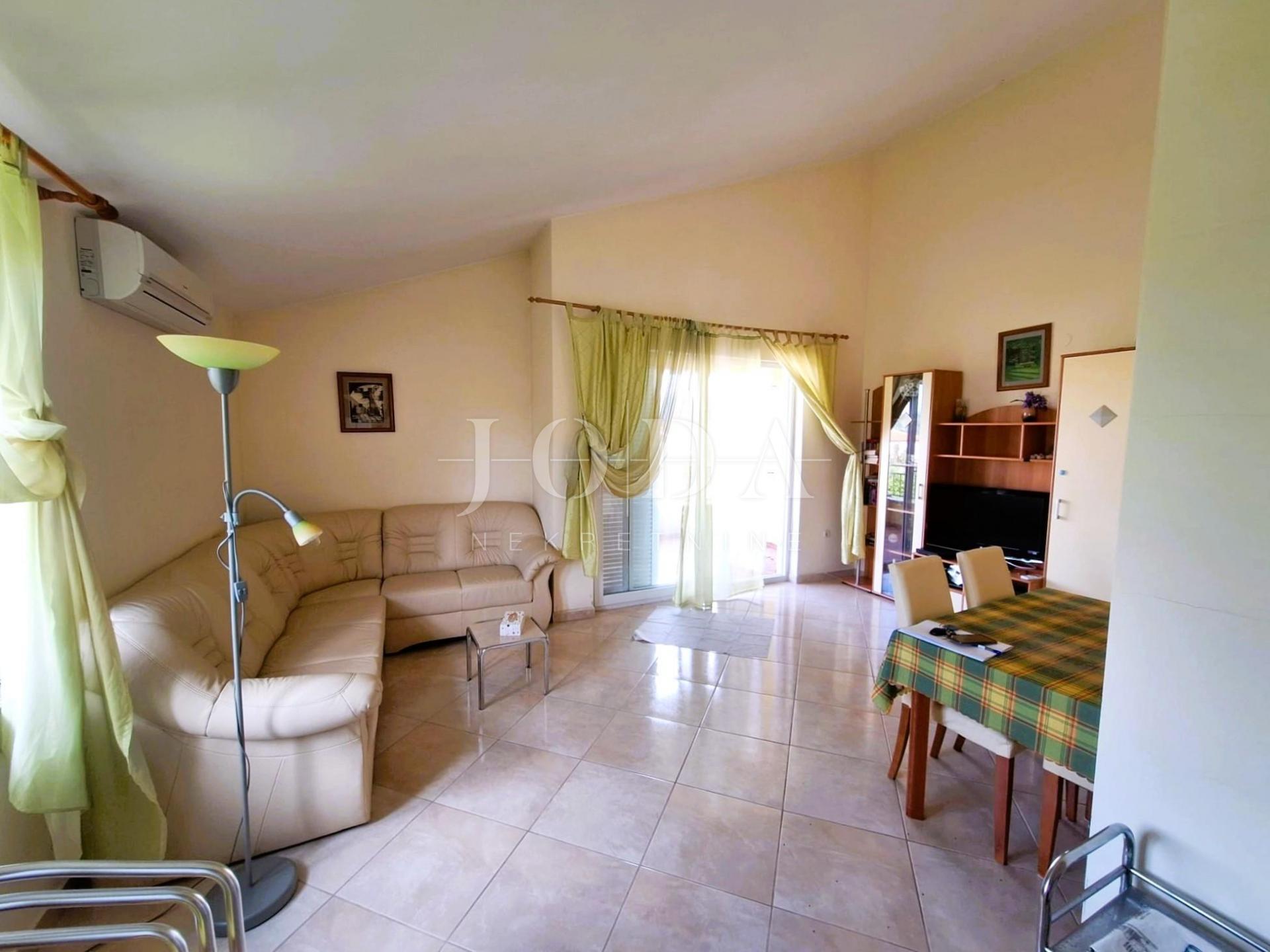 Prodaje se apartman na drugom katu apartmanske zgrade na odličnoj lokaciji blizu mora. Apartman ima 71,58 m2 i sastoji se od dvije spavaće sobe, dnevnog boravka s kuhinjom i blagovaonom, kupaone, spremišta, hodnika i prostrane terase. Klimatiziran.