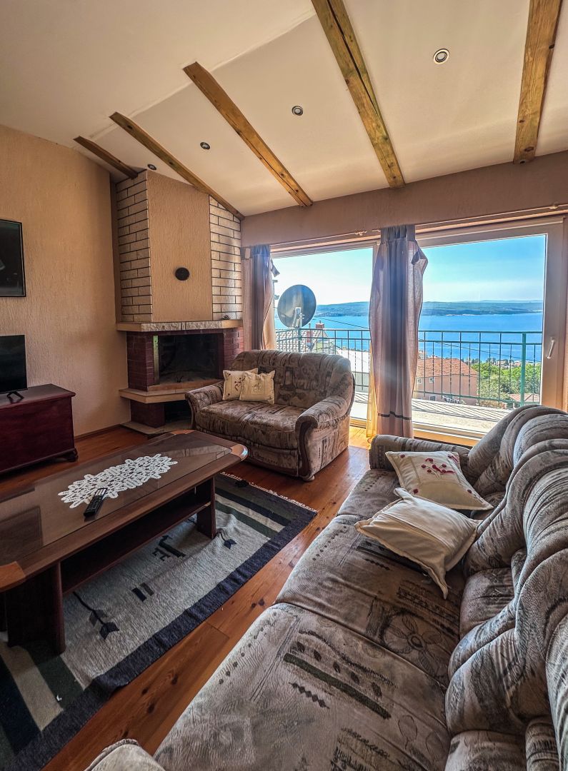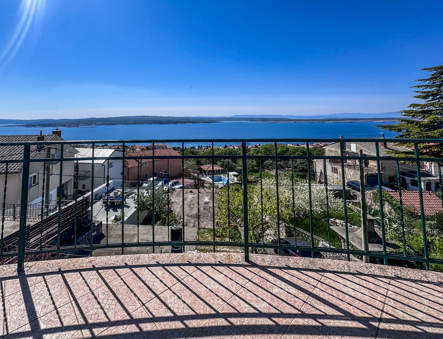 Opis (Engleski): A spacious house with a stunning sea view is for sale in Crikvenica, just 500 meters from the beach and some of the most picturesque coastline in the region. With a total living area of 400 m² on a plot of 536 m², this property offers an ideal combination of comfort, location, and investment potential. Perfectly positioned in an attractive residential zone, the house is suitable for a large family home or can be easily adapted into a residential building with up to five private apartments, including two units per floor and a luxurious penthouse on the top level.The house is spread over three floors. The ground floor of 112 m² features a welcoming entrance hall, a kitchen with a dining area, a spacious living room with a separate office corner, a wine cellar, a bathroom, and a large garage providing secure parking and additional storage. An internal staircase leads to the first floor, where there are three generously sized bedrooms, all with sea views, and two of them offering direct access to a balcony. This level also includes a walk-in wardrobe and three bathrooms, each ensuite to the bedrooms....