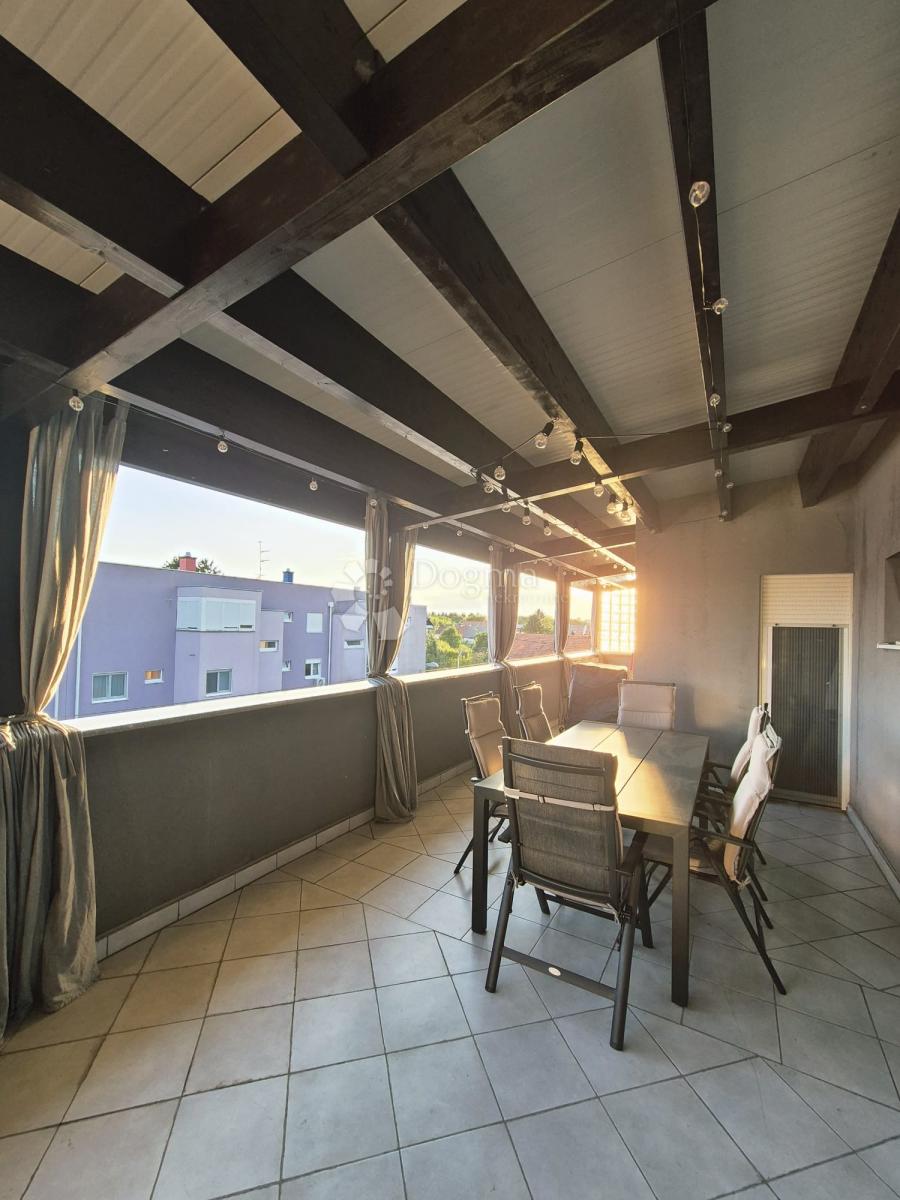 Stan je prostran i svijetao, a sastoji se od dvije prostrane spavaće sobe, kupaonice s WC-om, dodatnog zasebnog WC-a, dnevnog boravka povezanog s blagovaonicom i kuhinjom, jedne manje lođe te velikog balkona koji novi vlasnici mogu urediti prema vlastitim željama.