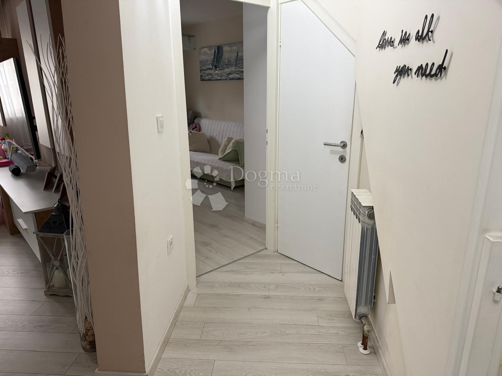 Na prodaju je jedinstven, prostran i moderno uređen dvoetažni stan površine 107,30 m², smješten u samom srcu grada, svega pet minuta hoda od Korza. Riječ je o nekretnini koja spaja praktičnost, udobnost i atraktivnu lokaciju, a posebnost joj je ulaz na obje etaže, što omogućuje različite načine korištenja prostora.