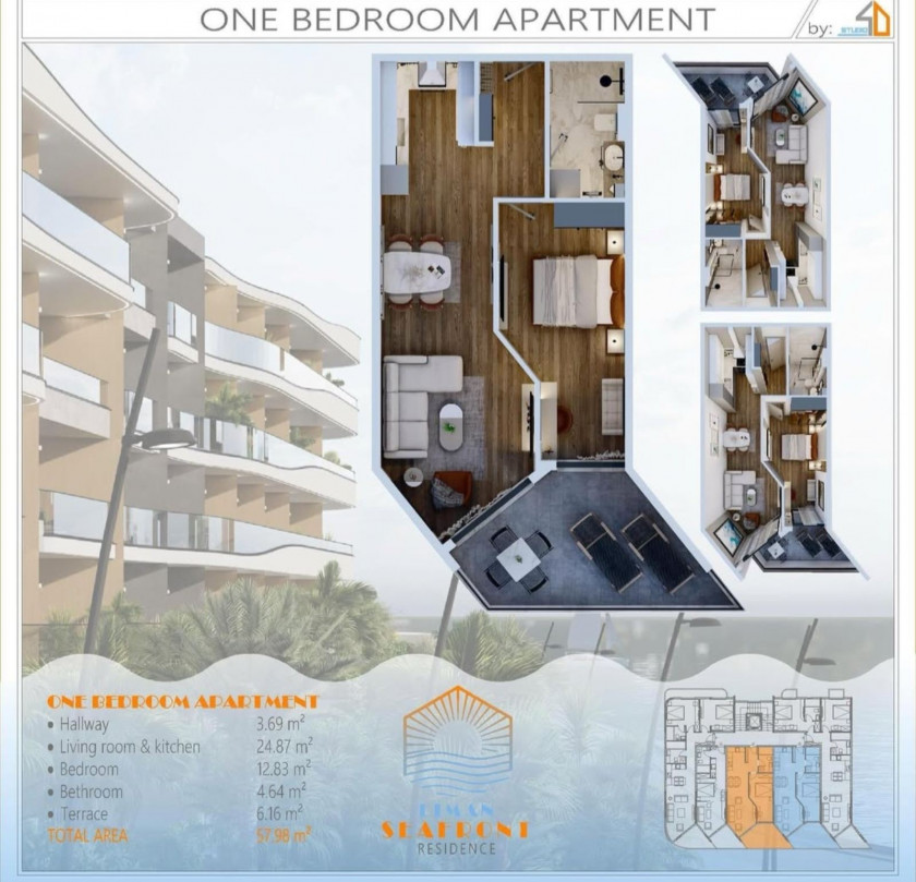 Opis: Prodaje se jednosoban stan od 58m2 u Ulcinju u izgradnji sa parking mjestom.