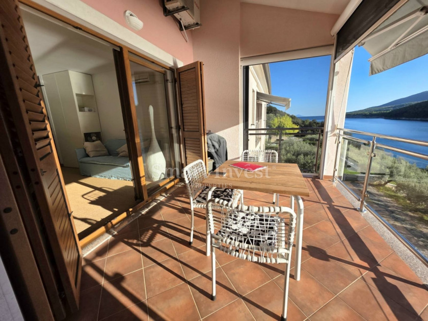 Sunčan i svijetao, a iz kuhinje, blagovaonice, dnevnog boravka i spavaće sobe pruža se pogled na plavetnilo čistog mora i netaknute prirode do kojih vode stepenice nepunih 50 m. Prostrana terasa opremljena je tendom te dodatno mrežastim sjenilom kao zaštitom od insekata.