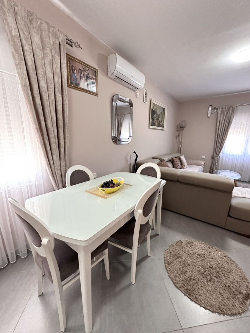 Kuća je potpuno namještena i sastoji se od jedne spavaće sobe, dnevnog boravka sa trpezarijom i kuhinjom, kupatila i terase. Ograđena je kovanom i zidanom ogradom, sa kliznom kapijom.