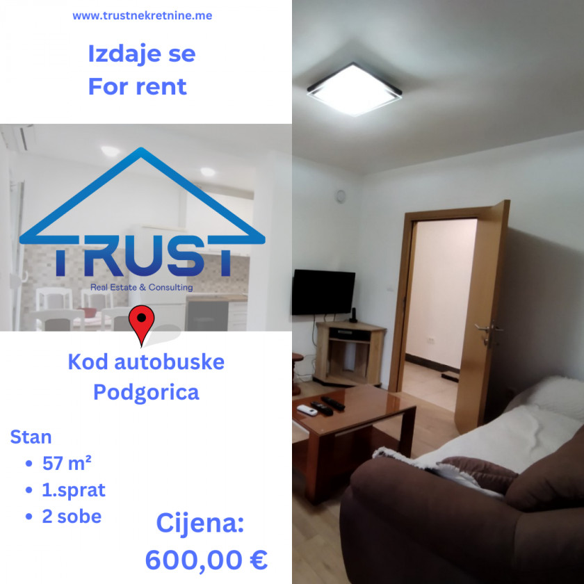 Vrsta: Stan-Apartman za Duži Najam Područje: Podgorica Lokacija: Drpe Mandića Cijena: €600 Spavaćih Soba: 2 Kupatila: 1 Stambena Površina: 57 m2 Klima Uređaj Čuvajte se prevara: NE vršite IBAN uplate