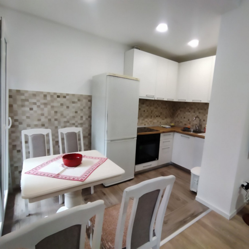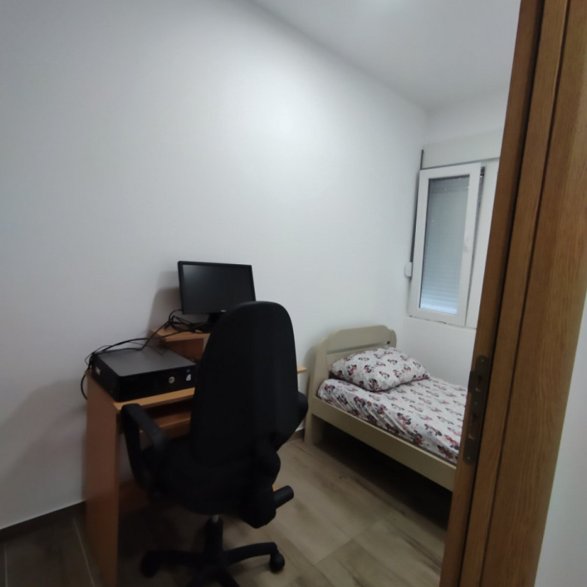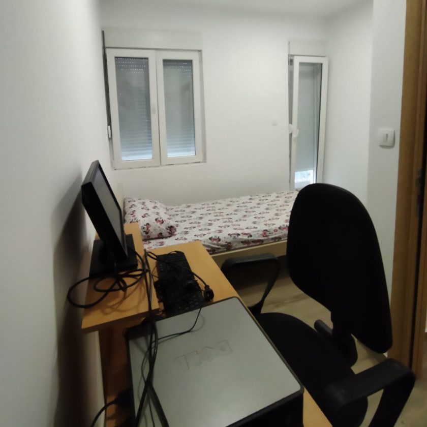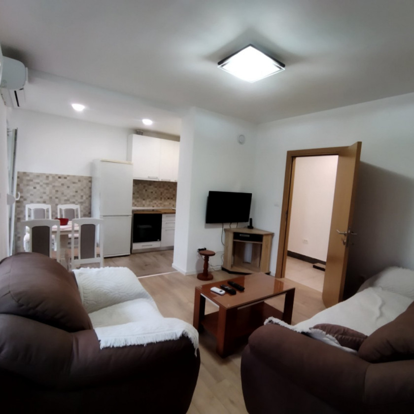 Stan je na 1.spratu zgrade koja ne posjeduje lift. Zgrada se nalazi preko puta autobuske, u blizini Mall of Montenegra, vrtića, osnovne škole... Stan je renoviran i posjeduje terasu površine 11 m² koja nije uračunata u kvadraturu stana. Parking je dostupan iza zgrade.