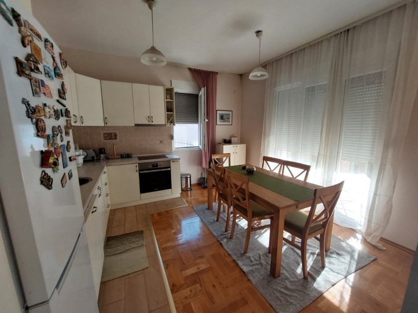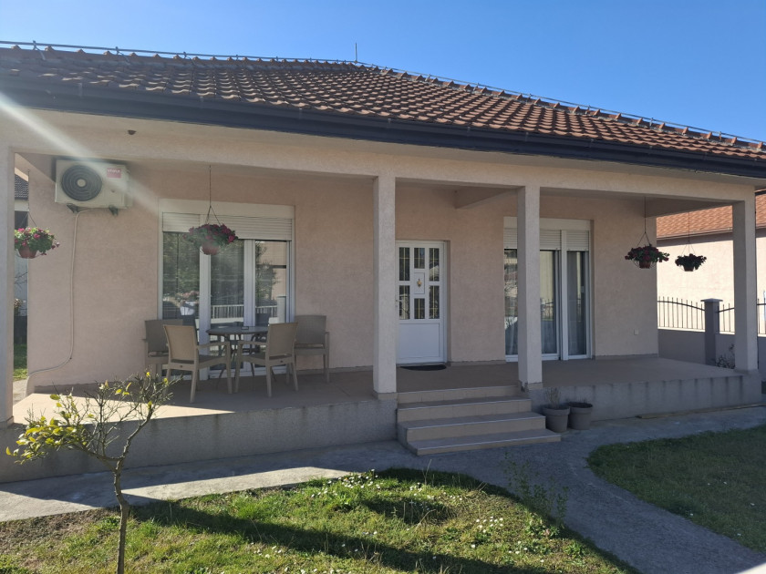 Opis: Izdaje se prostrana, potpuno namještena trosobna kuća površine 120m² na placu od 420m², smještena u mirnom dijelu Tološa, idealnom za porodični život.