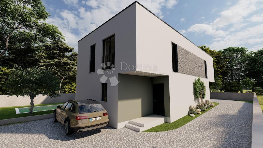 Stan se prostire na dvije etaže. U prizemlju se nalazi natkriveni ulaz, hodnik, kupaonica, spremište ispod stubišta te veliki otvoreni prostor u kojem su povezani kuhinja, blagovaonica i dnevni boravak. Iz dnevnog dijela izlazi se na prostranu terasu i dvorište s privatnim bazenom. Kat donosi tri spavaće sobe, dodatnu kupaonicu te balkon. Jedna od soba ima izravan izlaz na balkon, što prostoru daje dodatnu vrijednost i atraktivnost....