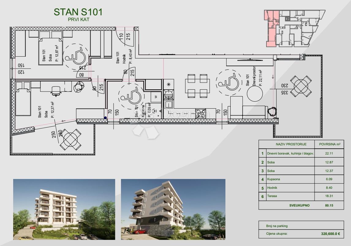 STAN ZAMET PRIMJEREN ZA INVALIDE PRVI KAT S LIFTOM