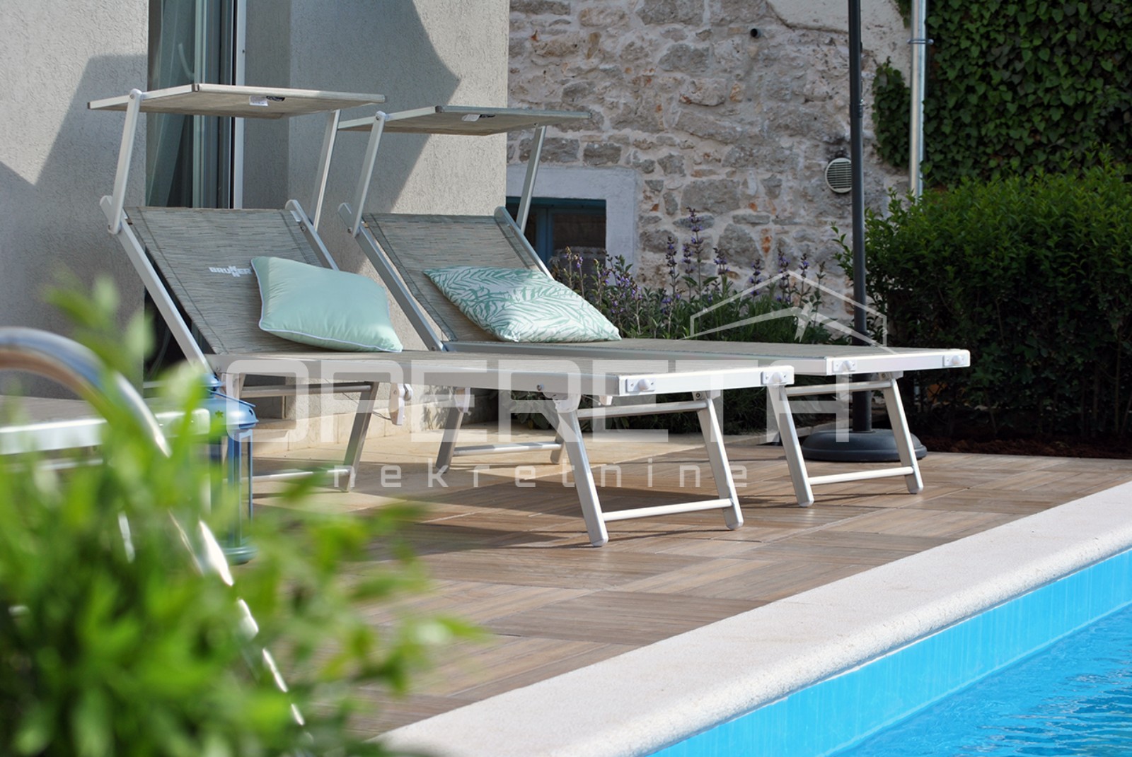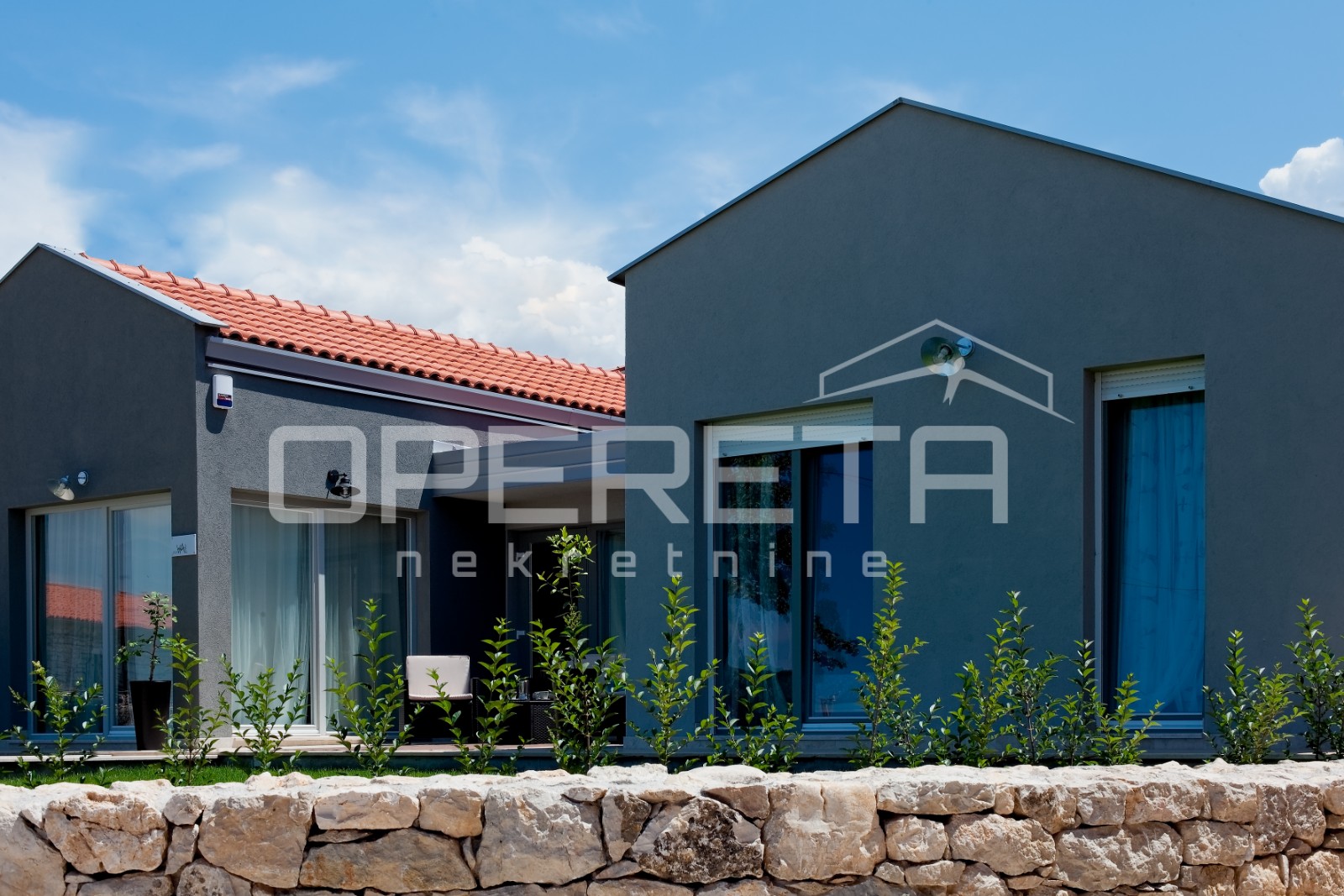 Opis: U mirnom naselju u okolici Poreča, na zemljištu površine 324 m², smještena je moderna montažna kuća neto površine 117 m². Arhitektonsko rješenje promišljeno je tako da hodnik razdvaja dnevnu i spavaću zonu, čime se postiže idealna ravnoteža između zajedničkog života i privatnosti.Dnevni dio čine prostrana kuhinja, blagovaonica i udoban dnevni boravak s izlazom u vrt preko velikih staklenih stijena. Puno prirodnog svjetla u kombinaciji s toplim drvenim detaljima stvara ugodnu atmosferu kroz cijelu godinu.U drugom dijelu kuće nalaze se tri komforne spavaće sobe i dvije kupaonice, od kojih je jedna u sklopu glavne sobe. Iz hodnika se izlazi na terasu s ljetnom kuhinjom, idealnom za druženja i opuštanje. Na okućnici je smješten bazen od 24 m² sa sunčalištem, a cijela parcela pruža potpunu privatnost i mir.Kuća je opremljena Mitsubishi VRV sustavom grijanja i hlađenja, što jamči visoku energetsku učinkovitost i udobnost. Dodatna prednost je što se prodaje s već uhodanim turističkim najmom – uključujući domenu i kontakte – što novom vlasniku omogućuje nastavak uspješnog poslovanja bez dodatnih ulaganja.Godine 2025....