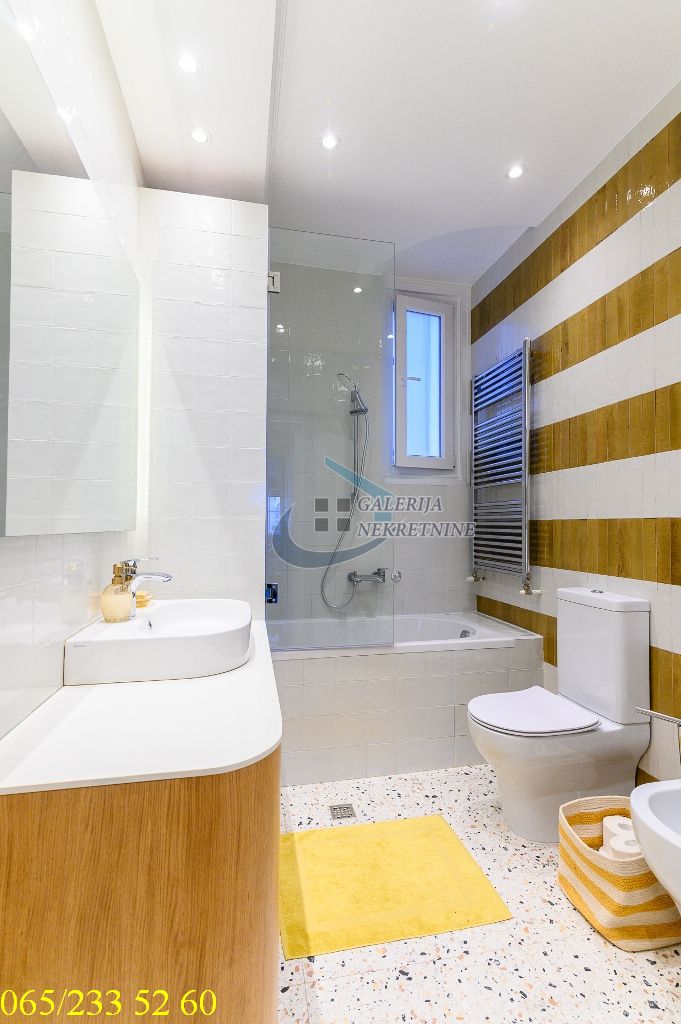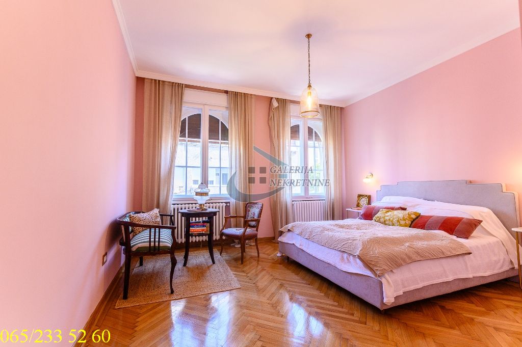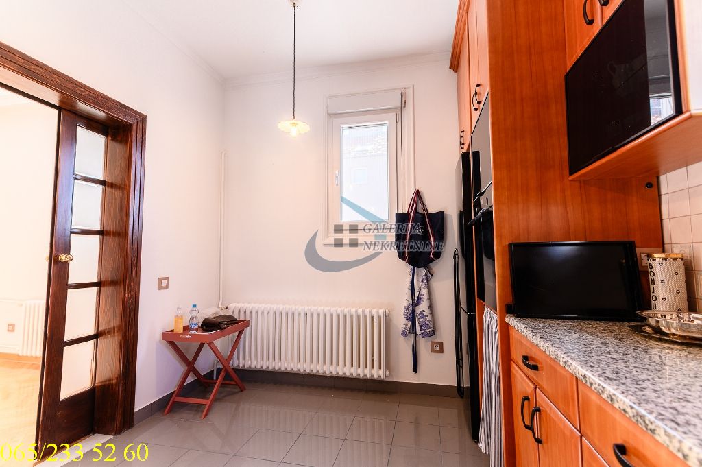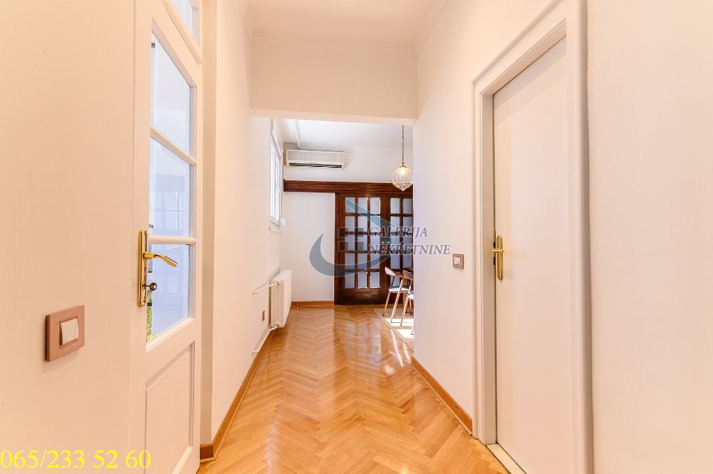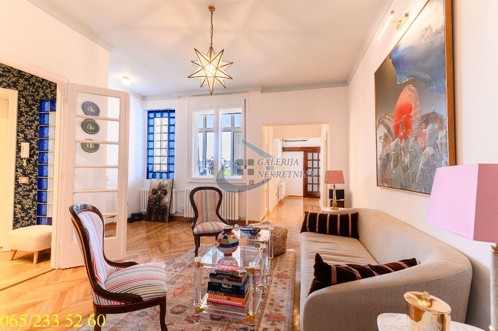 U prilici smo da Vam ponudimo reprezentativnu i luksuznu trosobnu nepokretnost salonskog tipa, koja se nalazi na četvrtom spratu petospratnice sa liftom, zidane krajem 30-ih godina prošlog veka. Zgrada je u odličnom stanju, sa renoviranom fasadom. Komotne prostorije su vrlo funkcionalno raspoređene i svaka ima prozor (prirodnu ventilaciju). Osećaj prostranosti pojačava visina plafona od 3m. Komforu doprinose dva kupatila, garderober, kao i lepa zastakljena lođa sa predivnim otvorenim gradskim pogledom što je retkost za centar grada. Trostrana orijentacija pruža obilje dnevnog svetla. Kompletno, vrlo kvalitetno i sa ukusom je renoviran, pa nikakva ulaganja nisu potrebna. Zbog dva ulaza (jedan trenutno zatvoren) lako je deljiv, a pružaju se i razne mogućnosti za adaptaciju i dobijanje dodatnih spavaćih soba. Grejanje je centralno. Stanu pripada podrum.