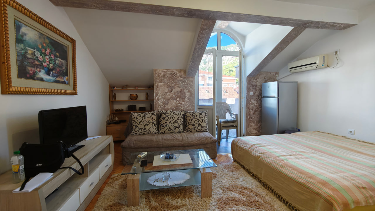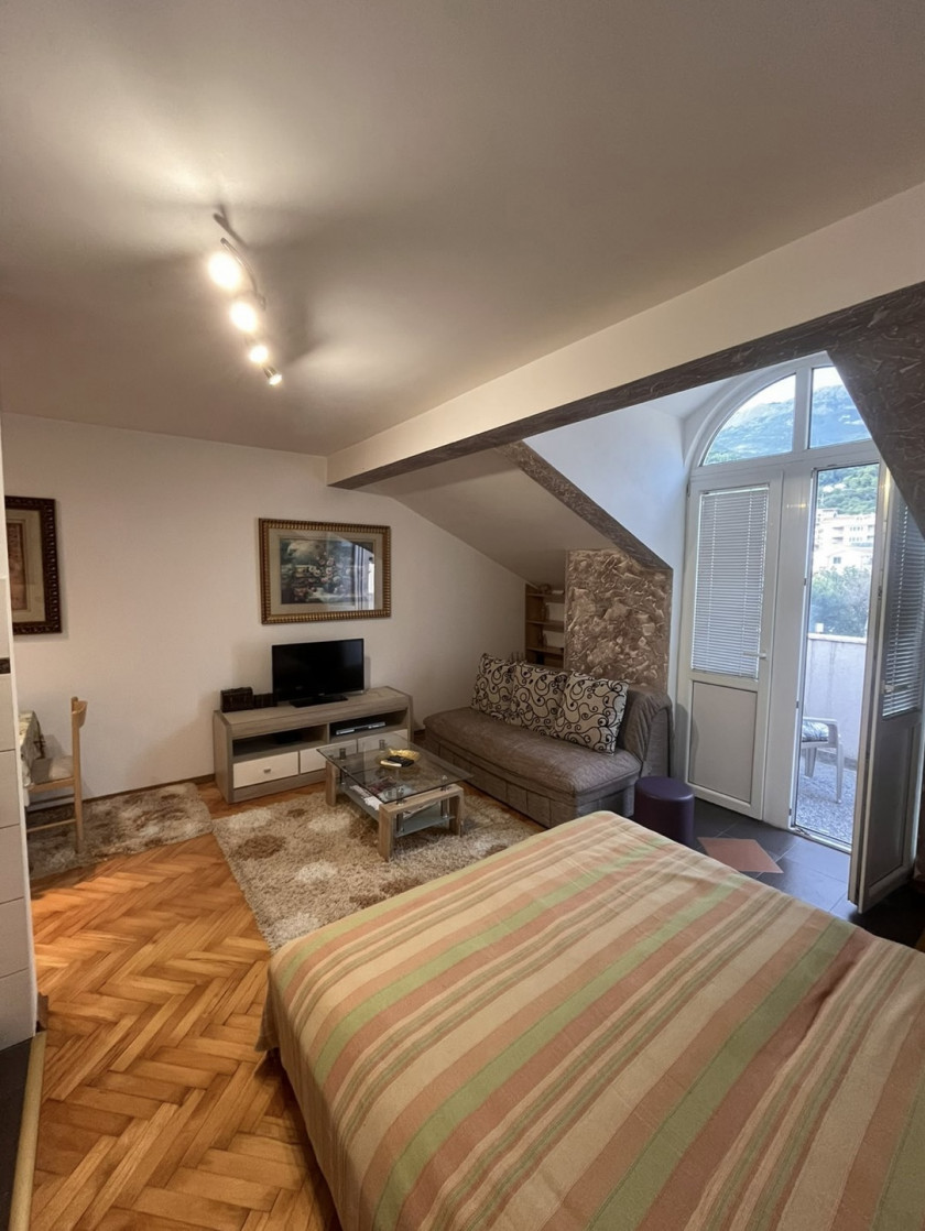 Opis: Nudi se udoban studio površine 34 m², smješten na trecem spratu stambene zgrade u Budvi.