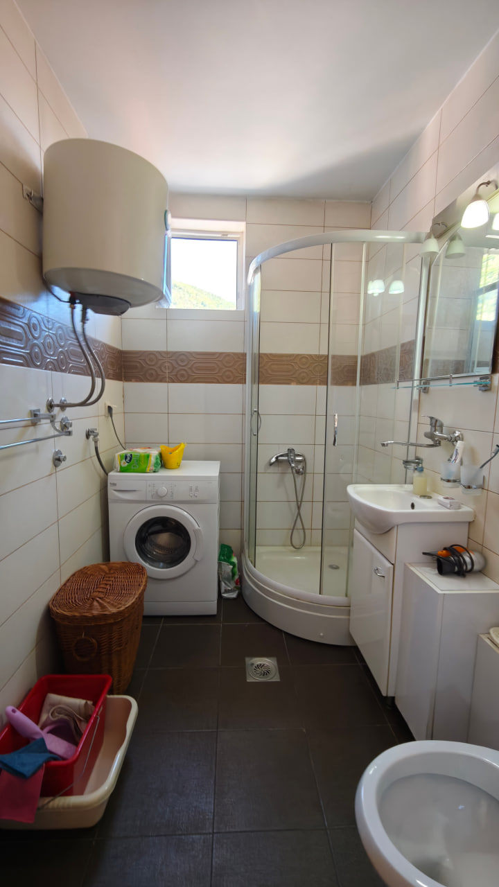 Prostor je pametno organizovan: u hodniku se nalazi mala niša koja se može koristiti kao ostava, a glavna zona je otvorena i svijetla. Tu je i terasa sa pogledom na planine — savršeno mjesto za jutarnju kafu ili večernji odmor.