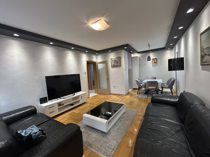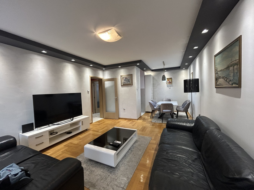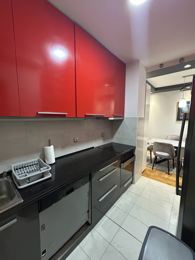 Izdaje se moderno opremljen dvosoban stan površine 76m2, sa garažnim mjestom u sklopu cijene, novogradnja u Moskovskoj ulici, dio grada preko Morače.