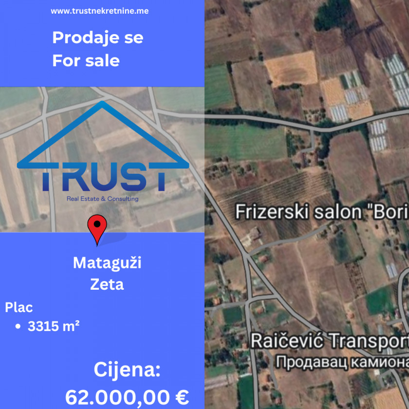 Plac se nalazi u naselju Mataguži i pravilnog je pravougaonog oblika. Ima direktan izlaz na put. Struja je do placa. Voda je udaljena nekih 100m, a postoji mogućnost kopanja bunara. Od centra Podgorice je udaljen oko 20 km.